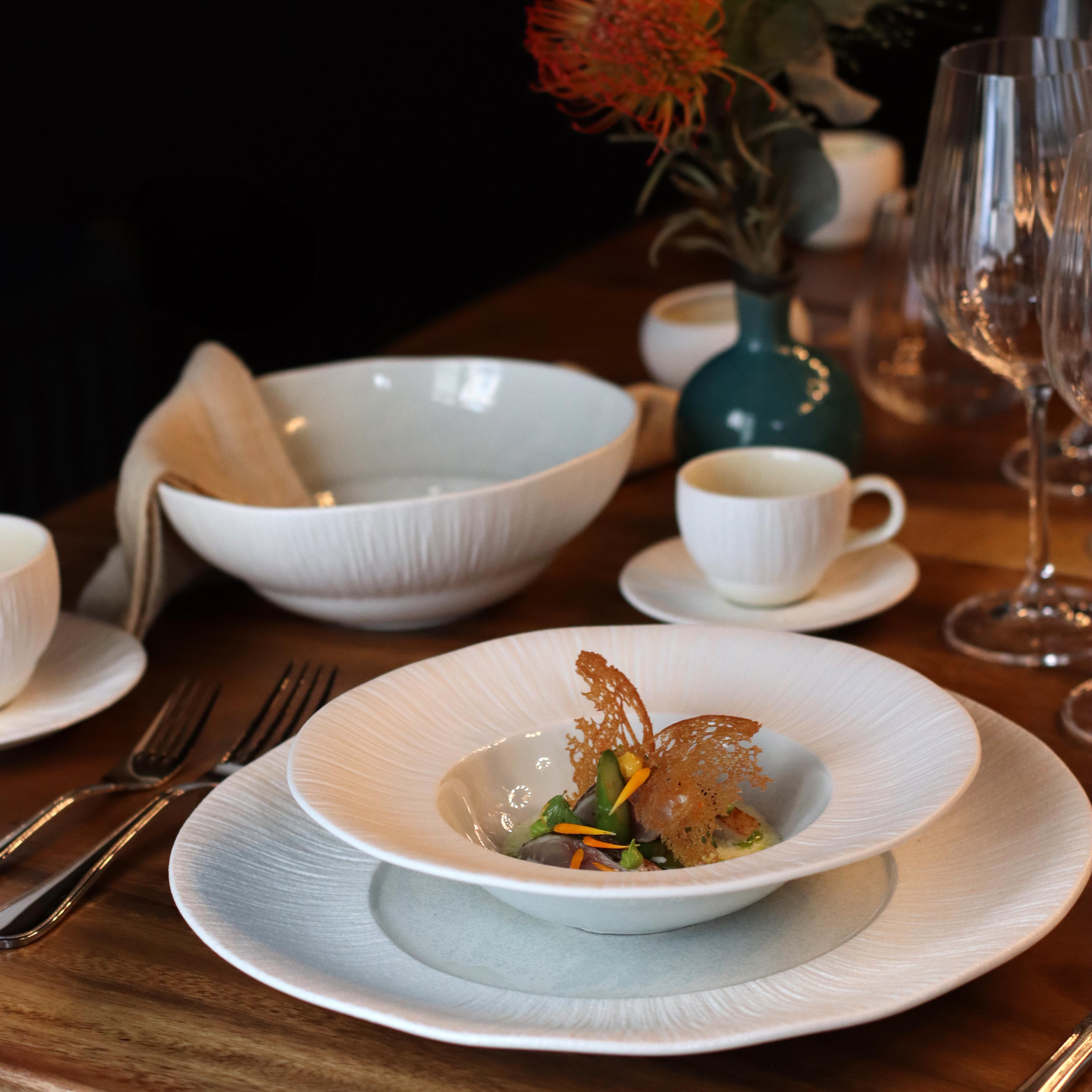 Ogo Living - Lot 4 Assiettes Gourmet Urus 23.5cm Porcelaine Beige Et Blanc