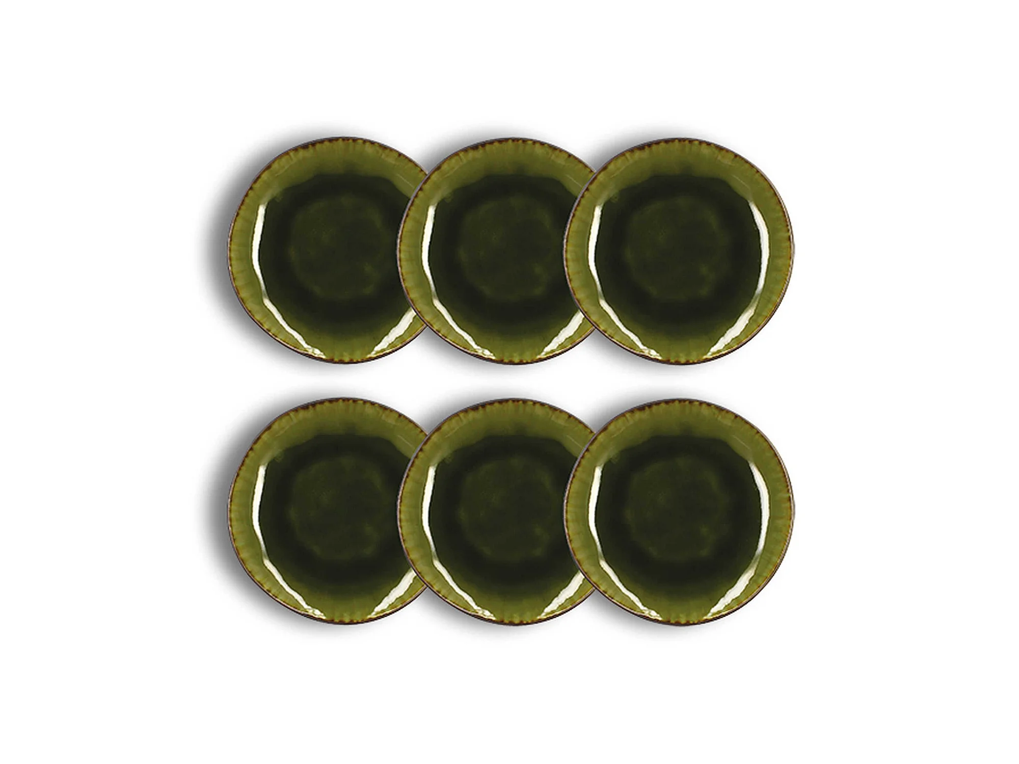 Ogo Living - Lot 6 Assiettes Dessert Meta 20cm En Gres Vert