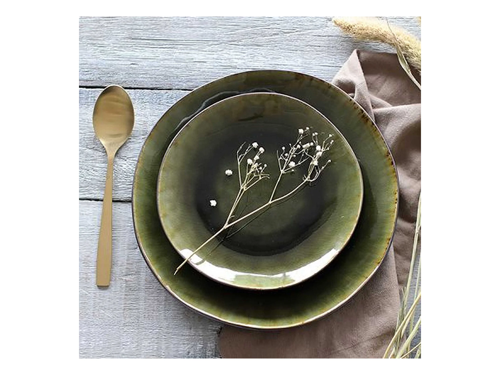 Set de 6 assiettes à dessert en céramique au grés du temps vert (Ø21cm) - MAKA
