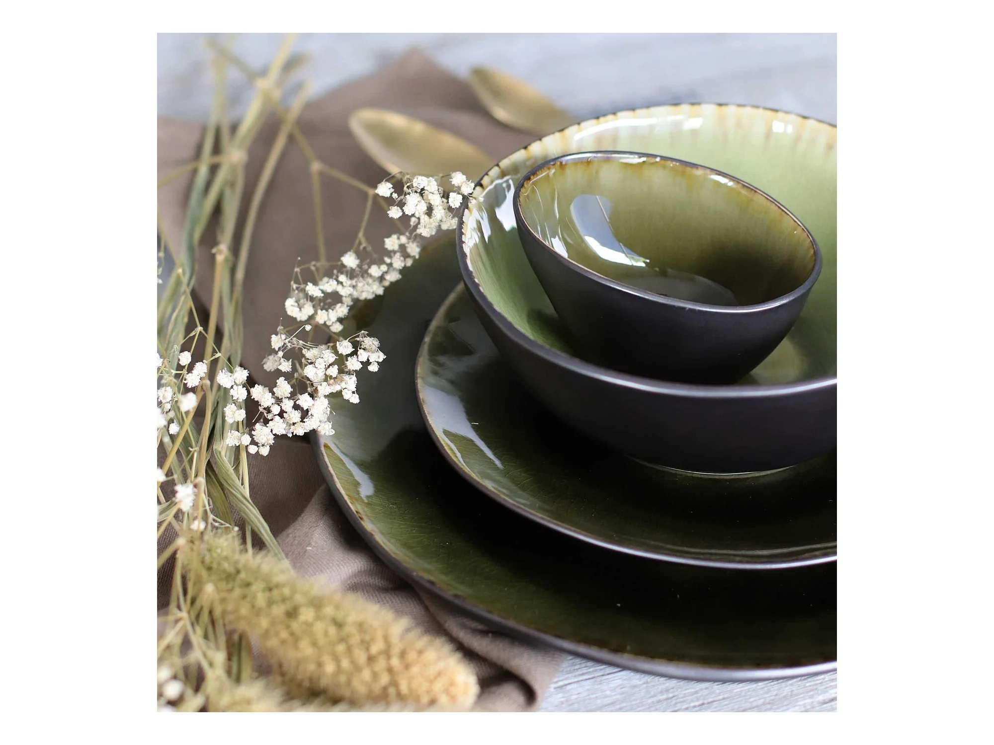Ogo Living - Lot 6 Assiettes Desserts Grenada 20.5cm En Gres Vert Fonce