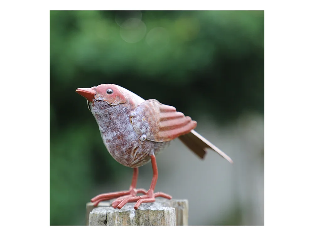 Oiseau en métal rouge et orange 16 x 4.5 x 10cm