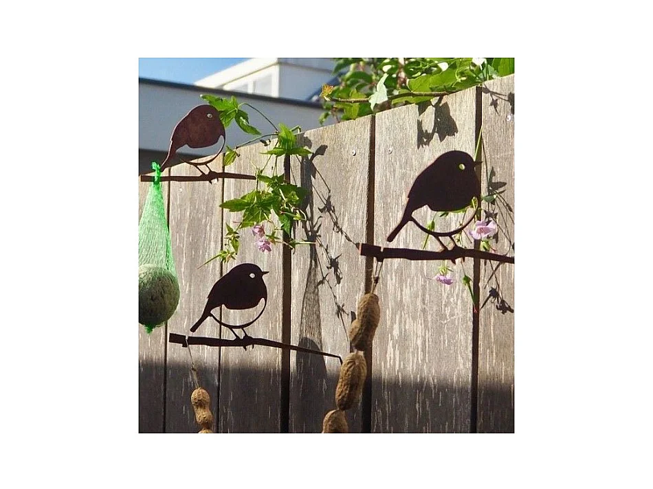 Oiseaux à planter mini rouge -gorge en acier corten (Lot de 3)