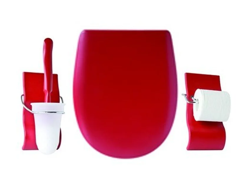 OLFA Abattant Ariane frein de chute et déclipsable avec porte balayette et porte papier rouge vermillon