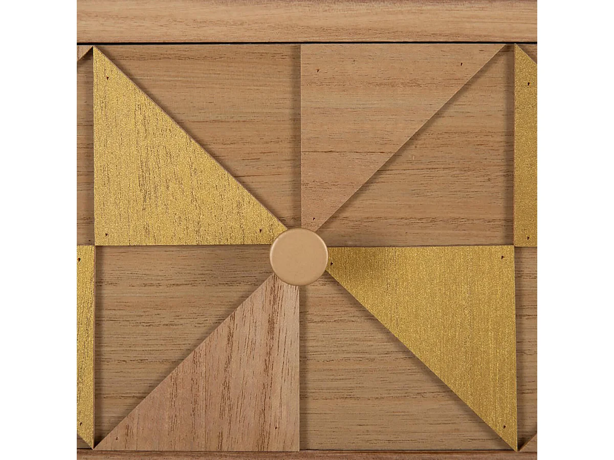 OLIVIA - Console 2 Tiroirs Bois Naturel et teinté Or