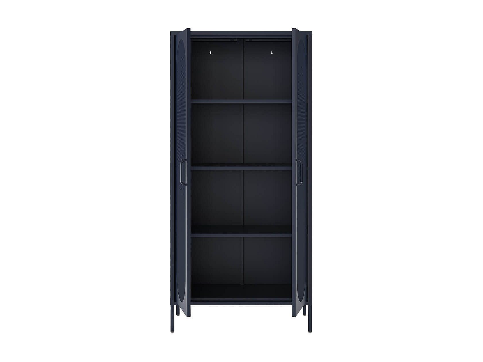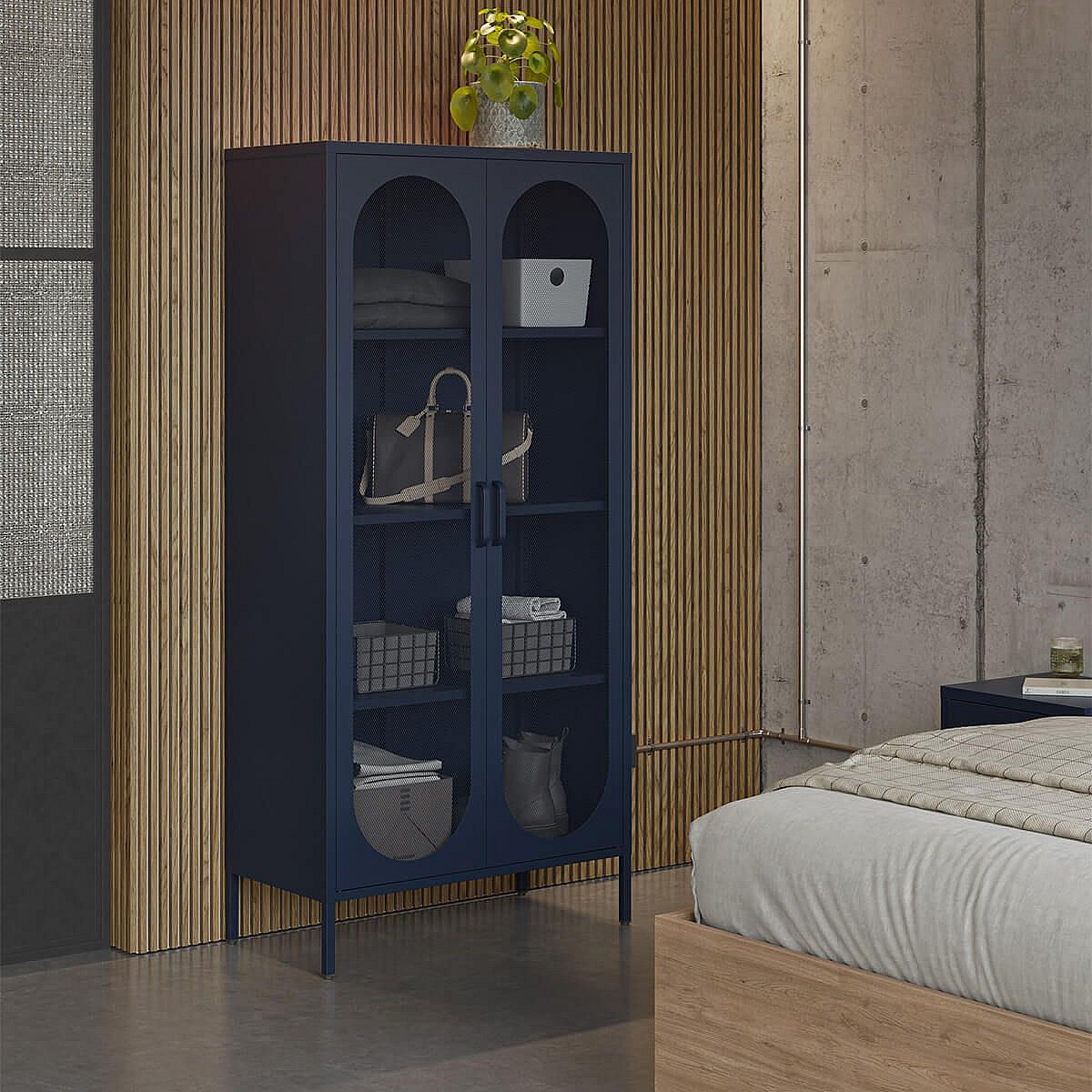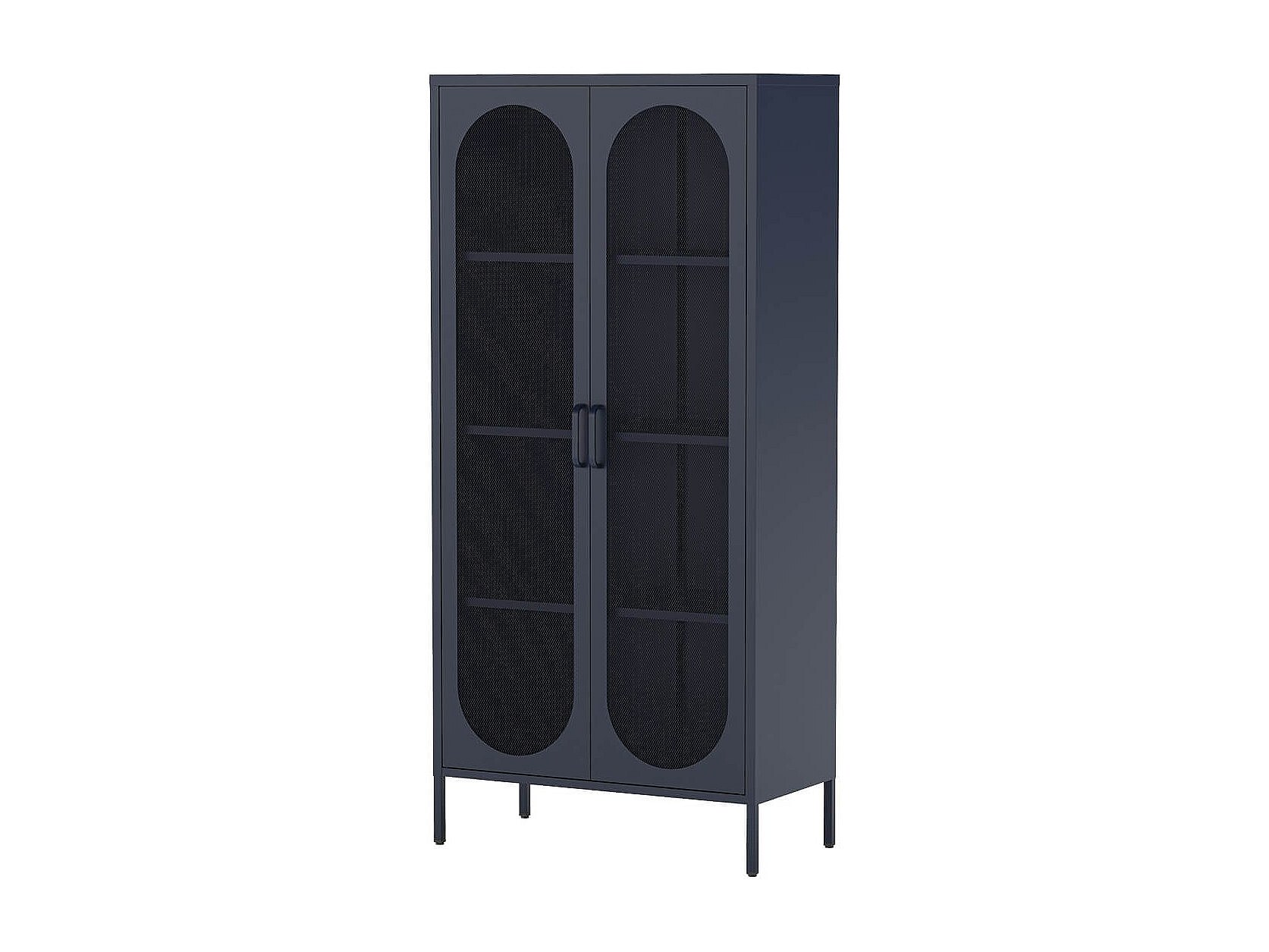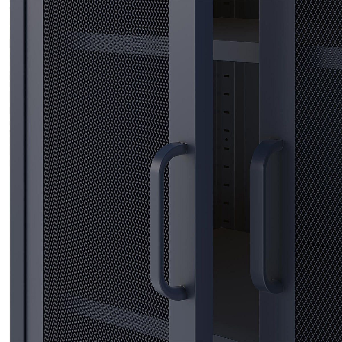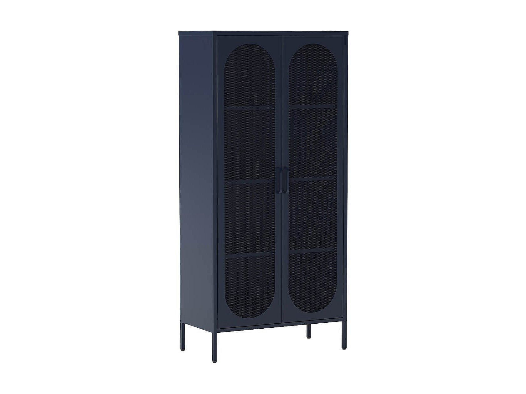 OLIVIA - Meuble Haut 2 Portes Ajourées en Métal Bleu Foncé