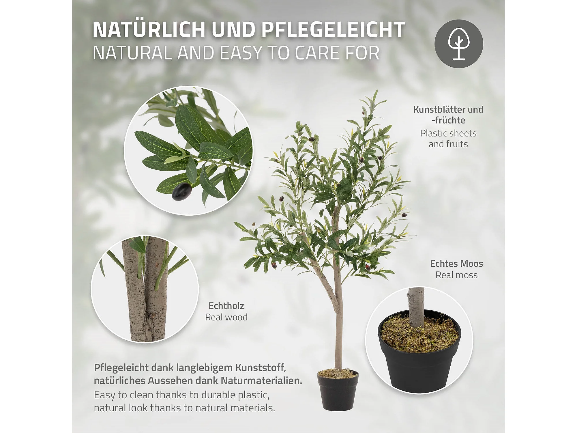 Arbres Artificiel SucceBuy Arbre Artificiel 210 cm, Plante Décorative en PE avec Pot Noir, Tronc et Feuilles Réalistes, Faux Olivier pour Bureau, Salon, Chambre