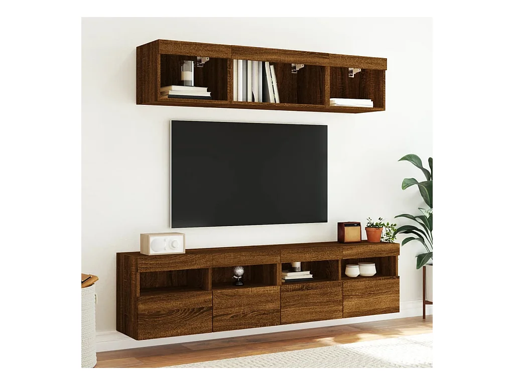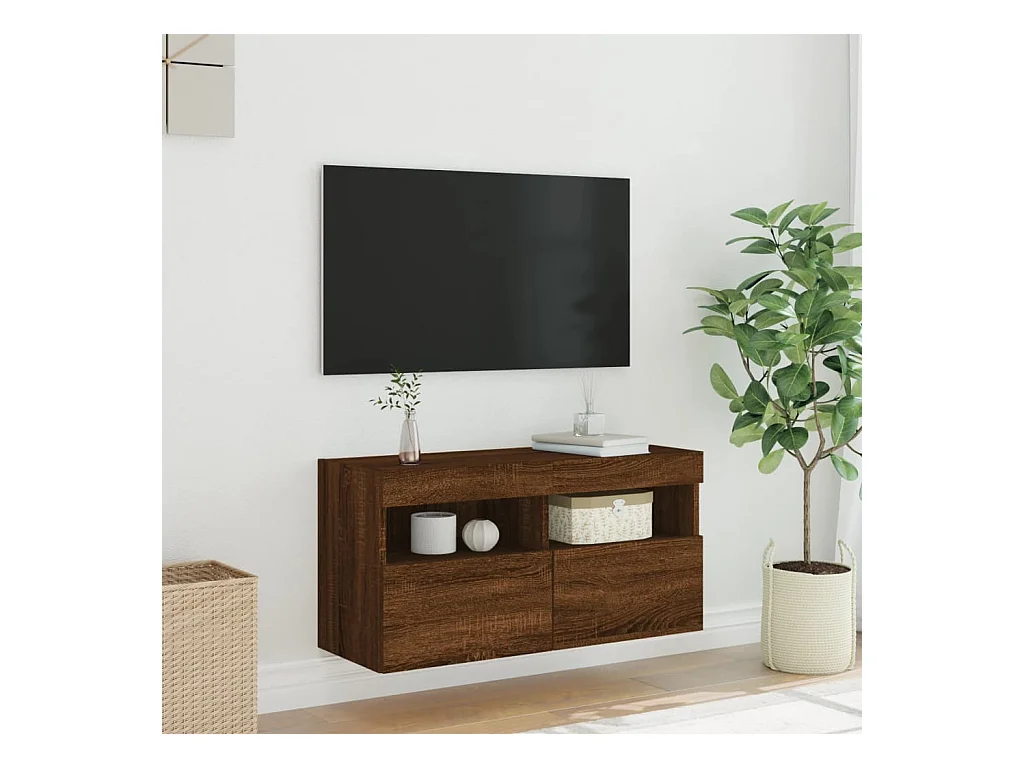 Ølstykke Meuble TV mural avec lumières LED chêne marron 80x30x40 cm