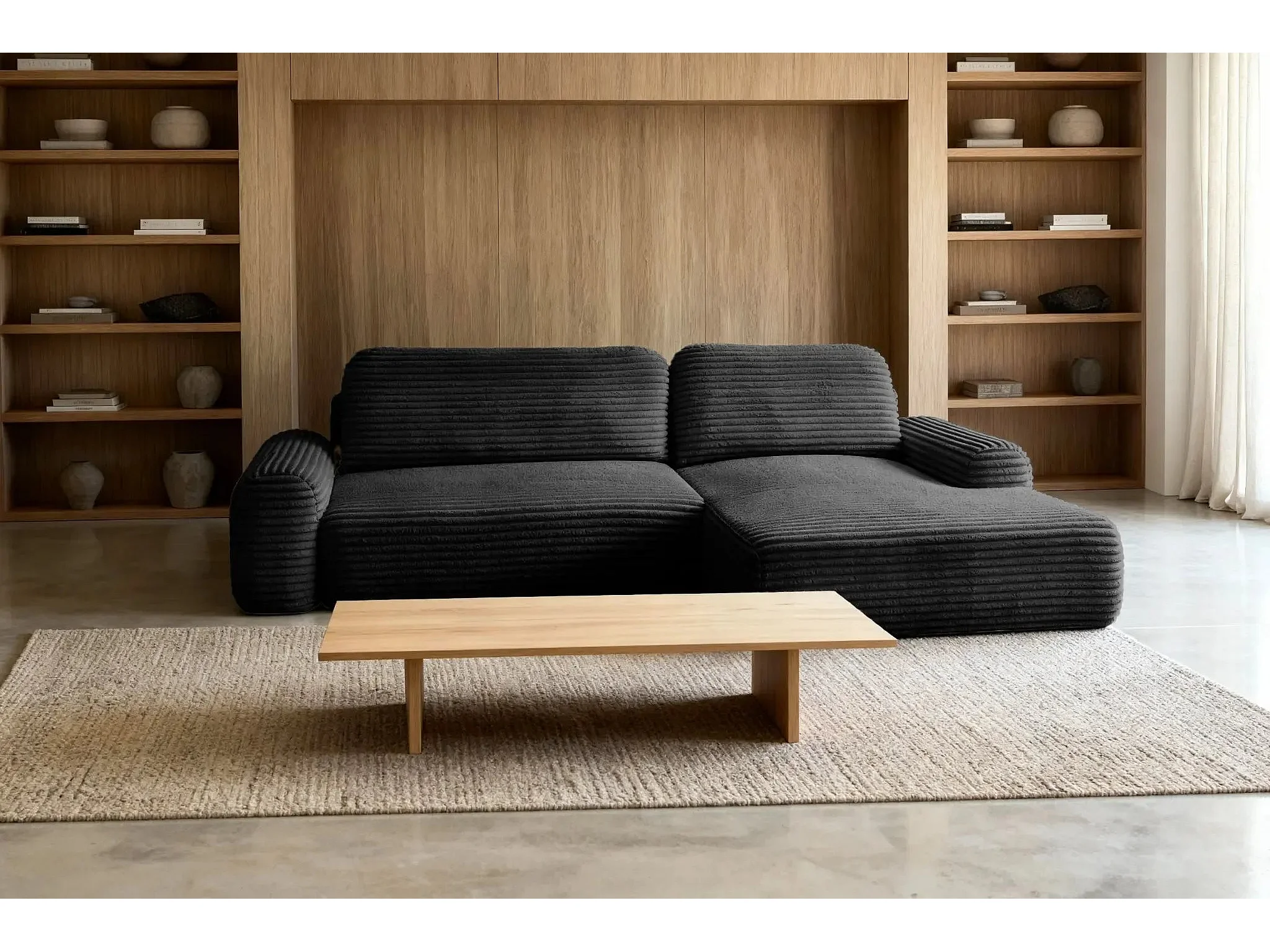 OLYMPE - Canapé d'angle velours cotelé 4 places - Noir - Droit