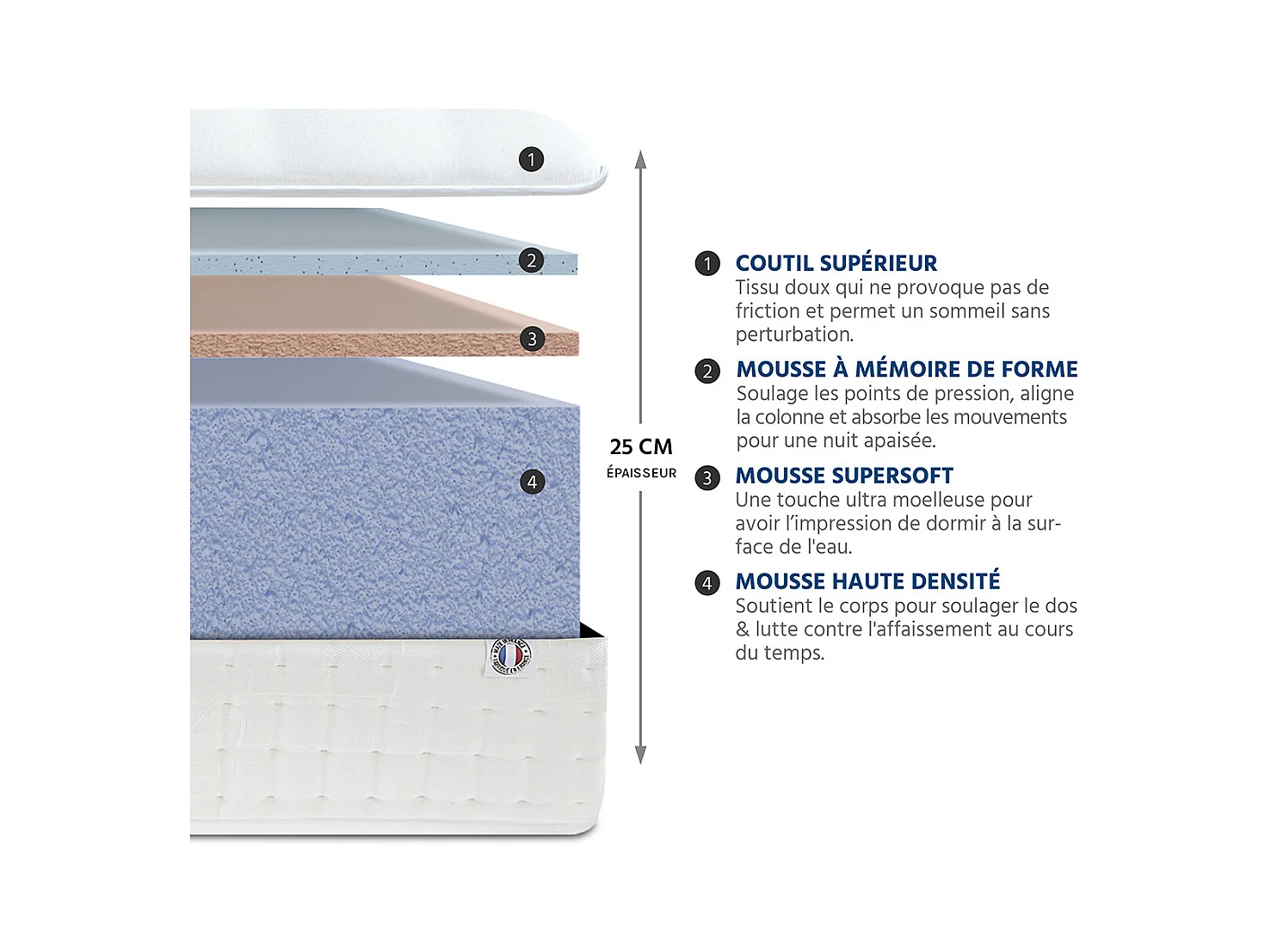OLYMPE LITERIE | Matelas APOLLON 140x190 cm | Mousse avec mémoire de forme