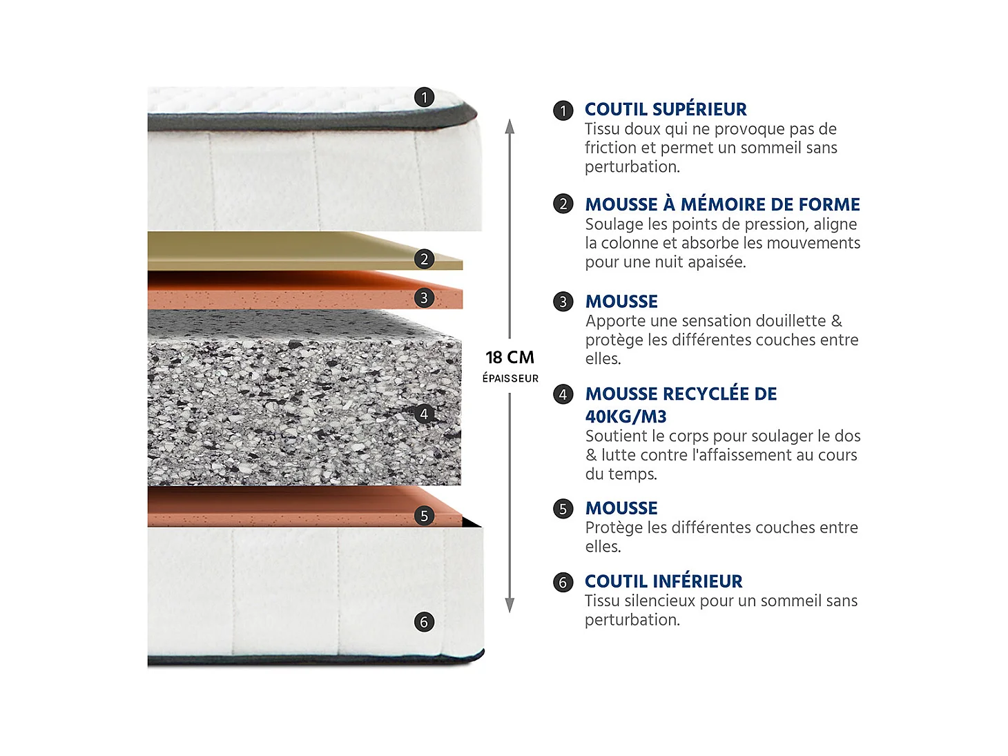 OLYMPE LITERIE | Matelas CRISTAL 90x200 cm | Mousse avec mémoire de forme