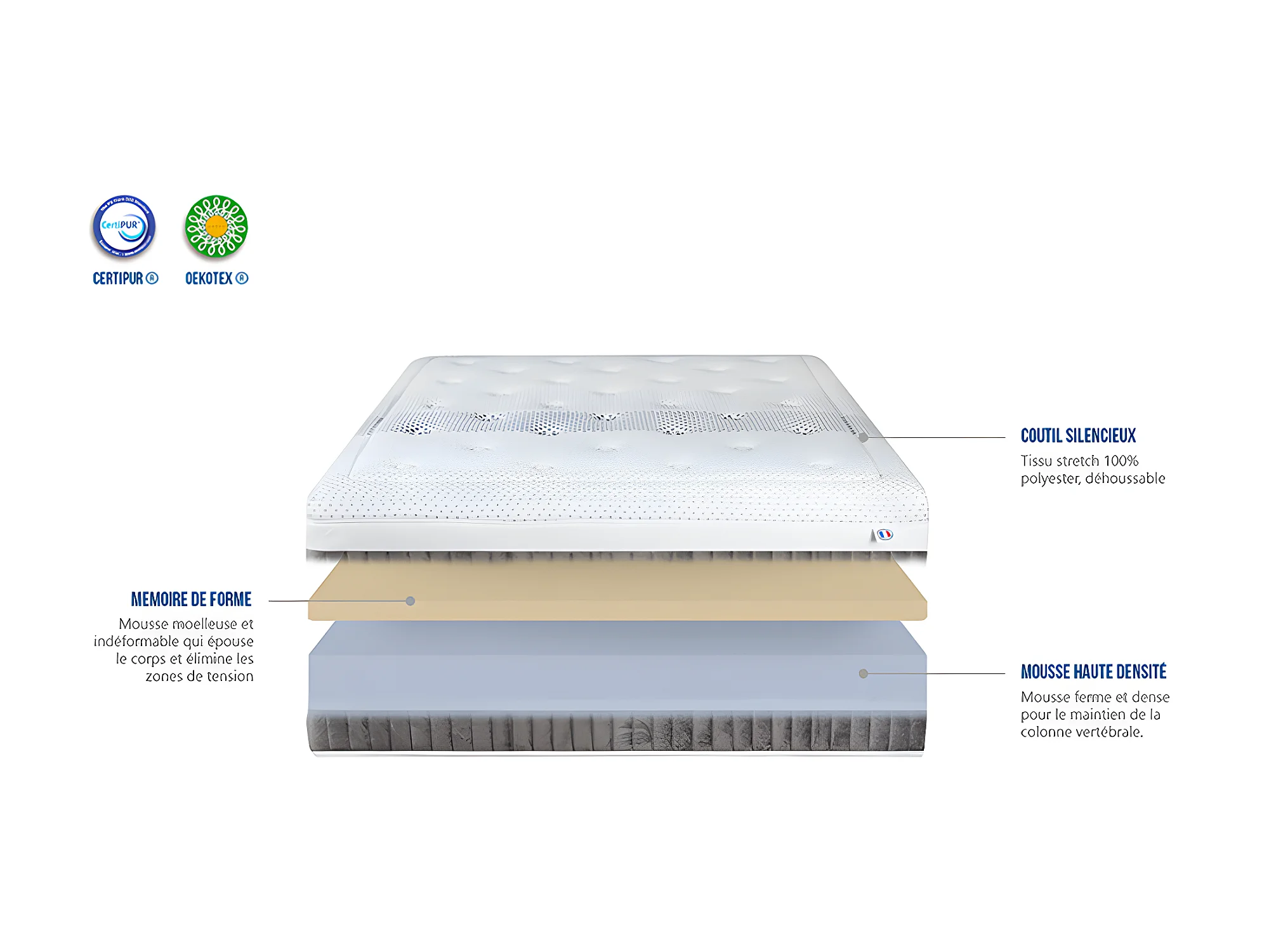 OLYMPE LITERIE | Matelas DELPHES 180x200 cm | Mousse avec mémoire de forme