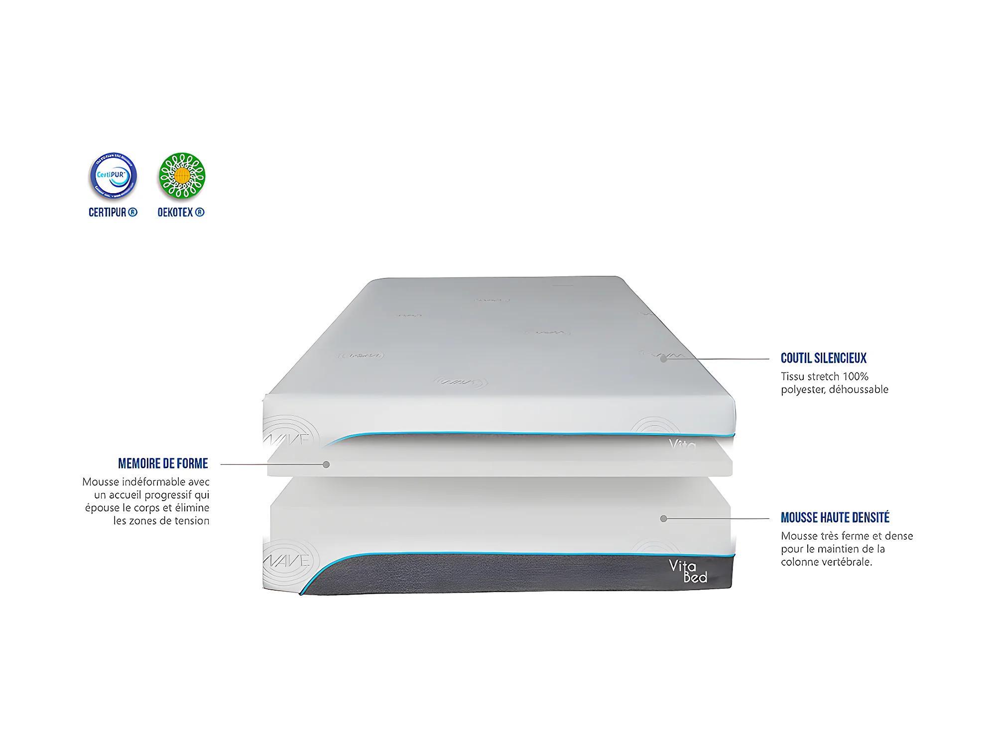 OLYMPE LITERIE | Matelas VITALIOS 180x200 cm | Mousse avec mémoire de forme