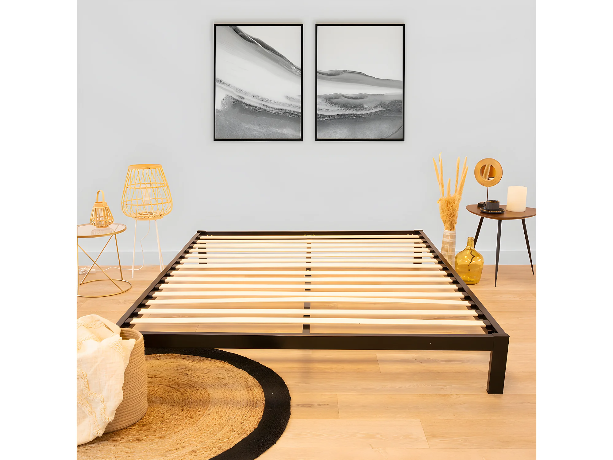 OLYMPE LITERIE | Sommier à lattes en métal MENELAS 140x190 cm | Coloris Noir | Livré en kit