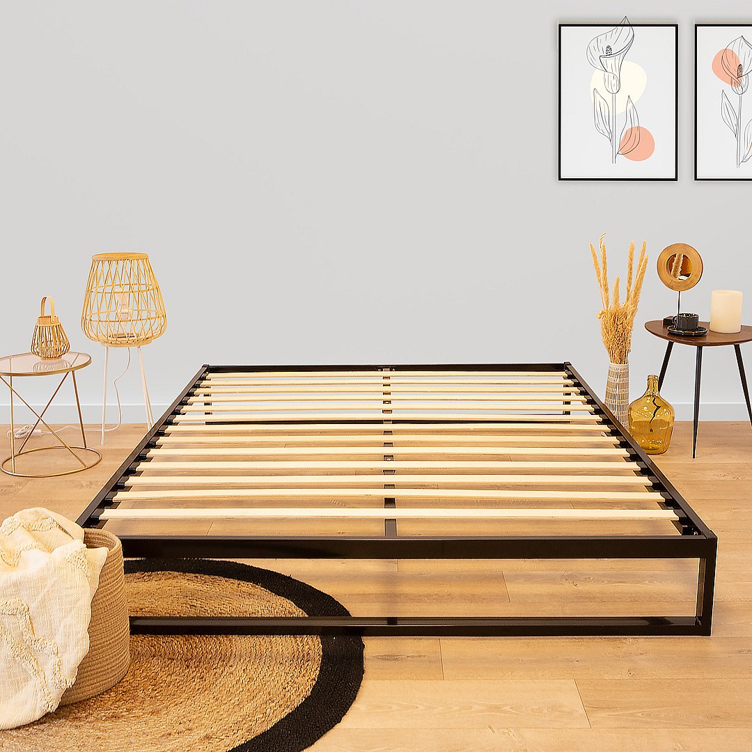 OLYMPE LITERIE | Sommier à lattes en métal PANDORE 160x200 cm | Coloris Noir | Livré en kit