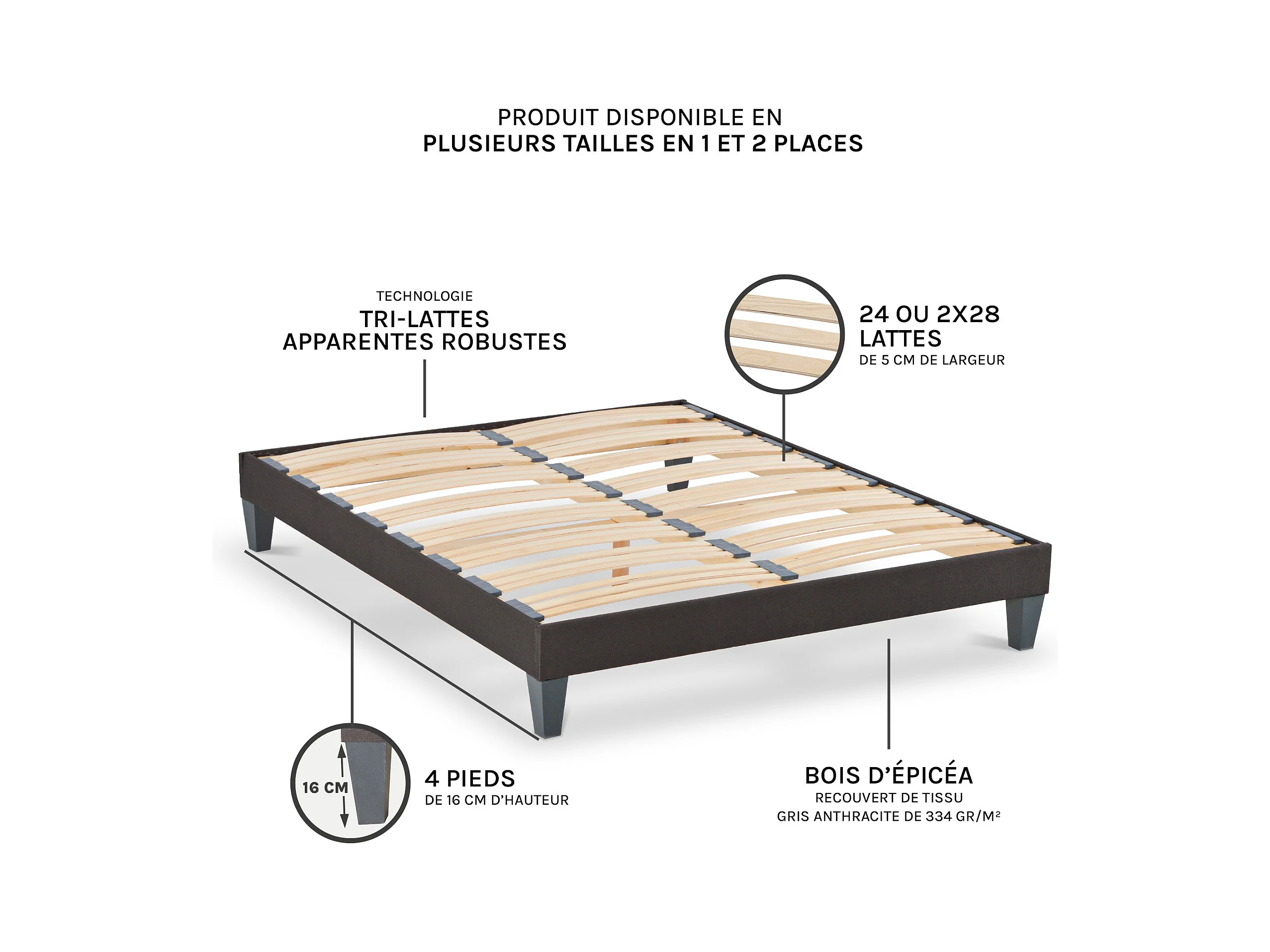 OLYMPE LITERIE | Sommier à lattes en bois KIT15 200x200 cm | Coloris Gris anthracite | Livré en kit
