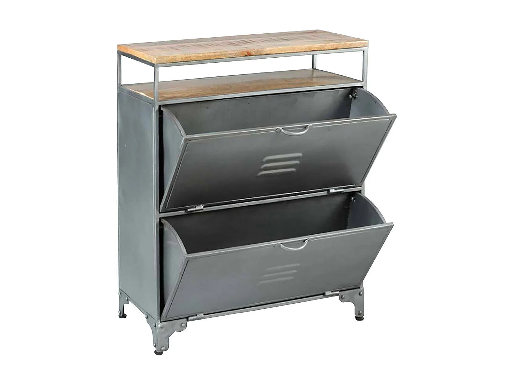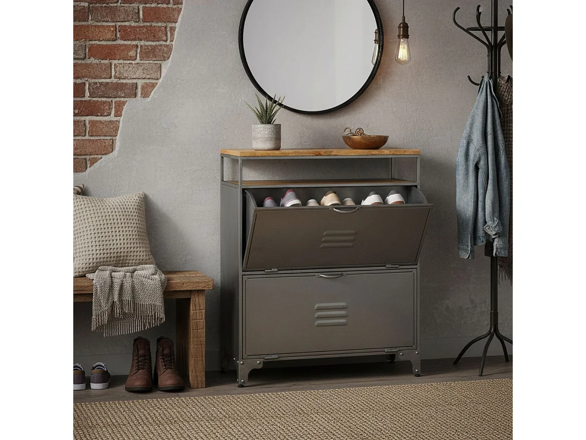 OMAYA - Meuble à Chaussures 2 Portes Acier Brut et Manguier