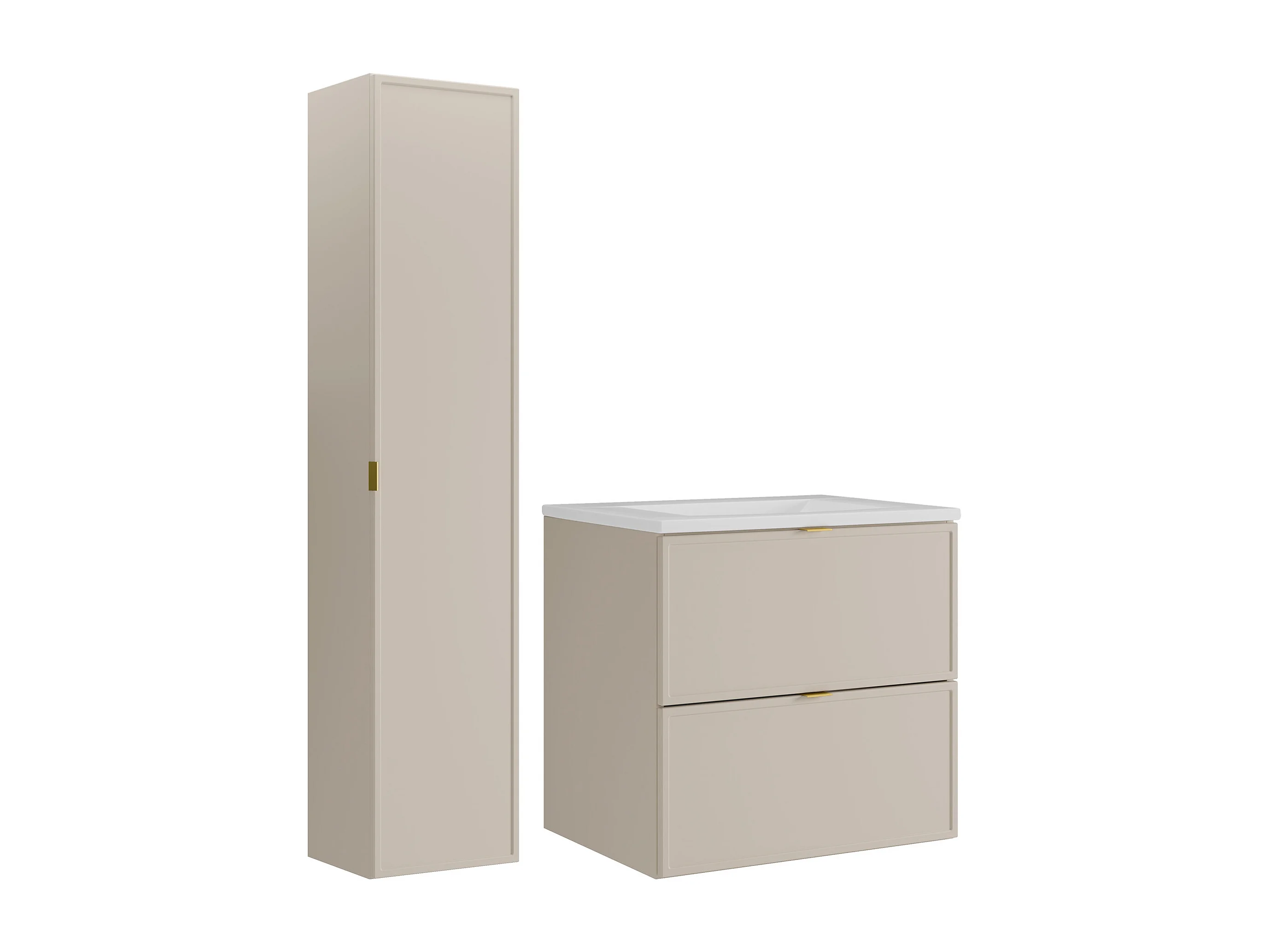 Meuble de salle de bain suspendu avec vasque à encastrer et colonne - Beige - 60 cm - ONDIL