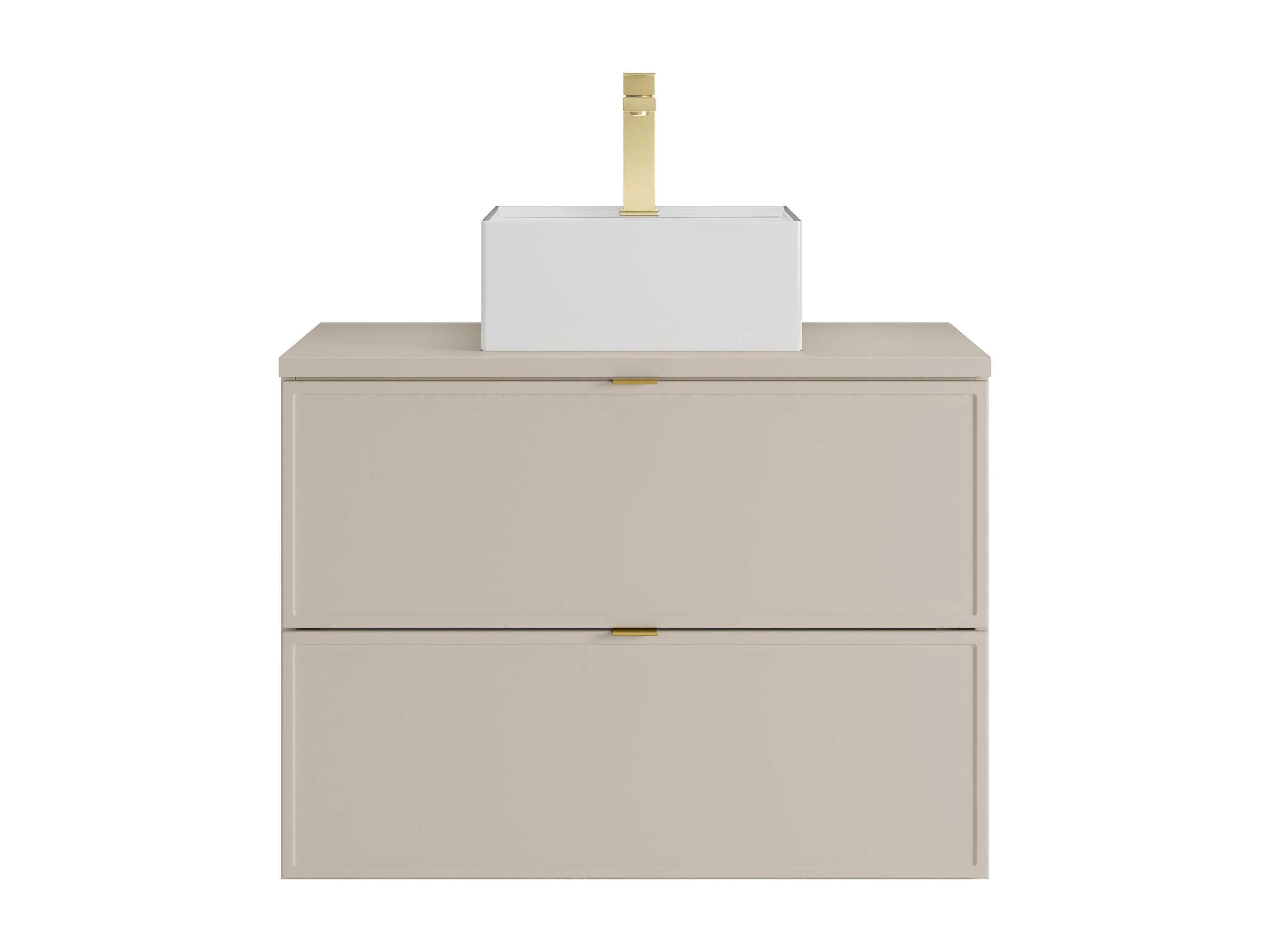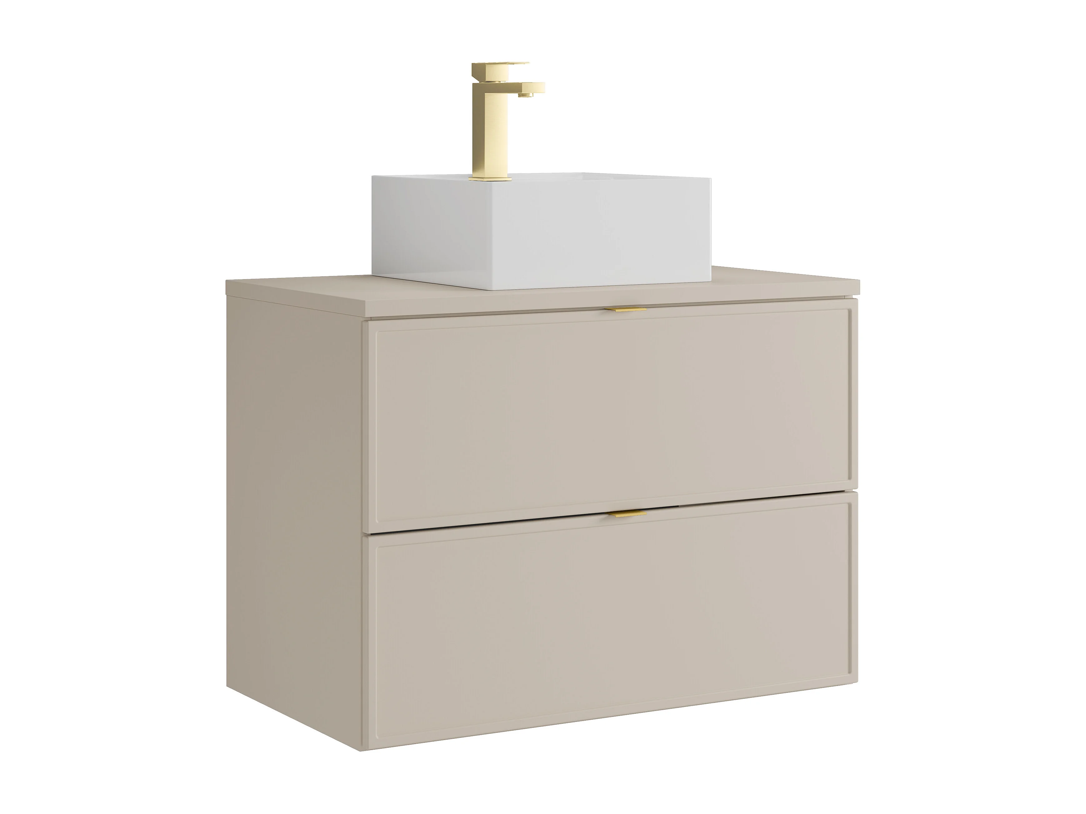 Meuble de salle de bain suspendu avec vasque à poser carrée et robinet - Beige - 80 cm - ONDIL