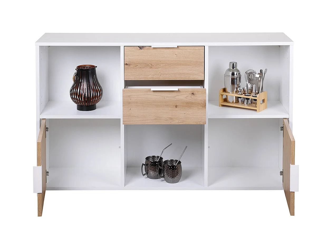 OPHELY - Meuble Multi-Rangement Blanc et Effet Bois