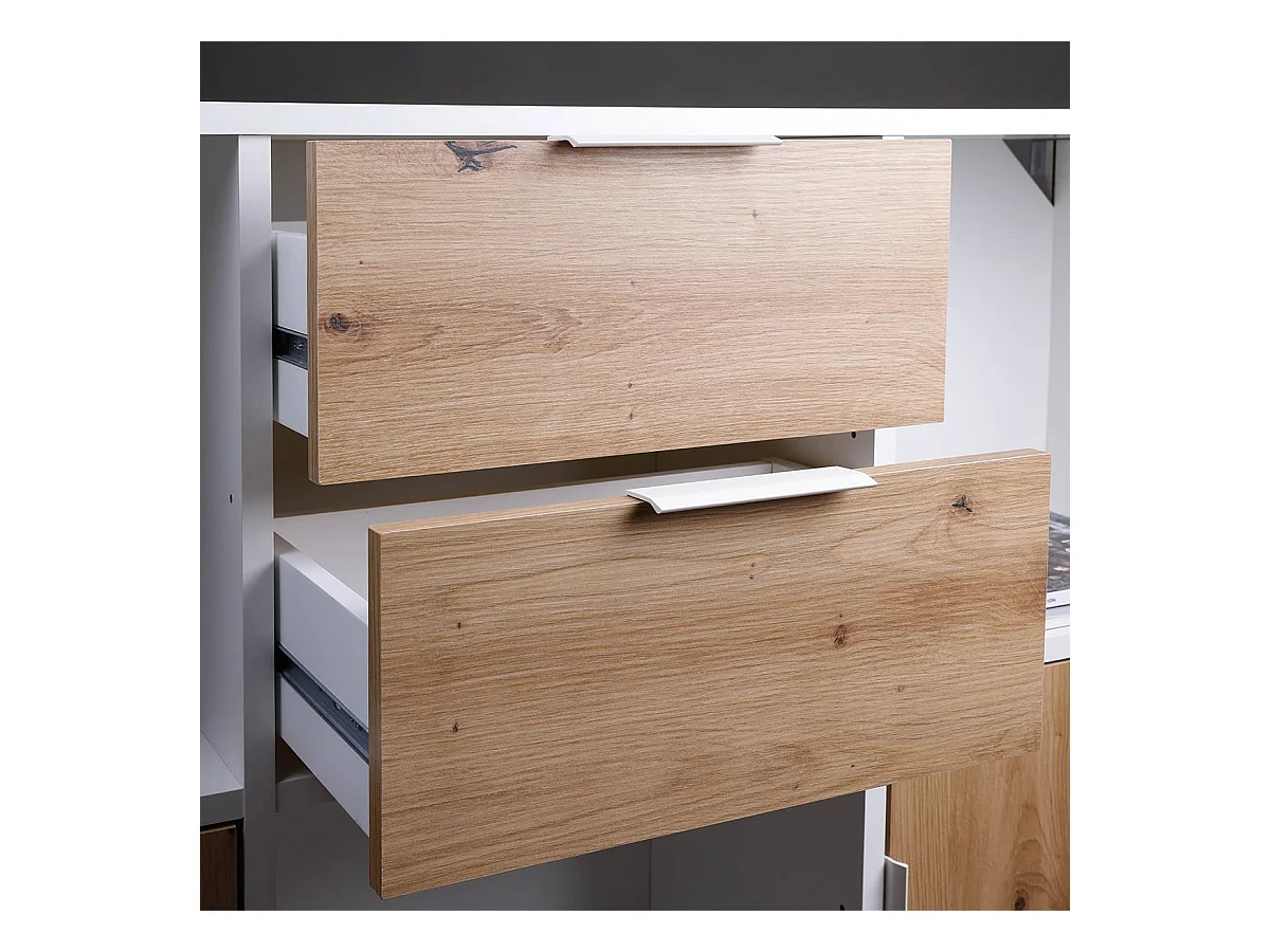 Commode 2 portes 4 tiroirs blanche et anthracite 100cm