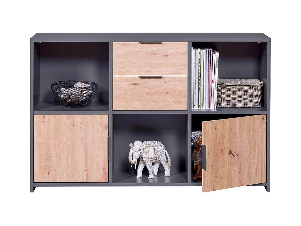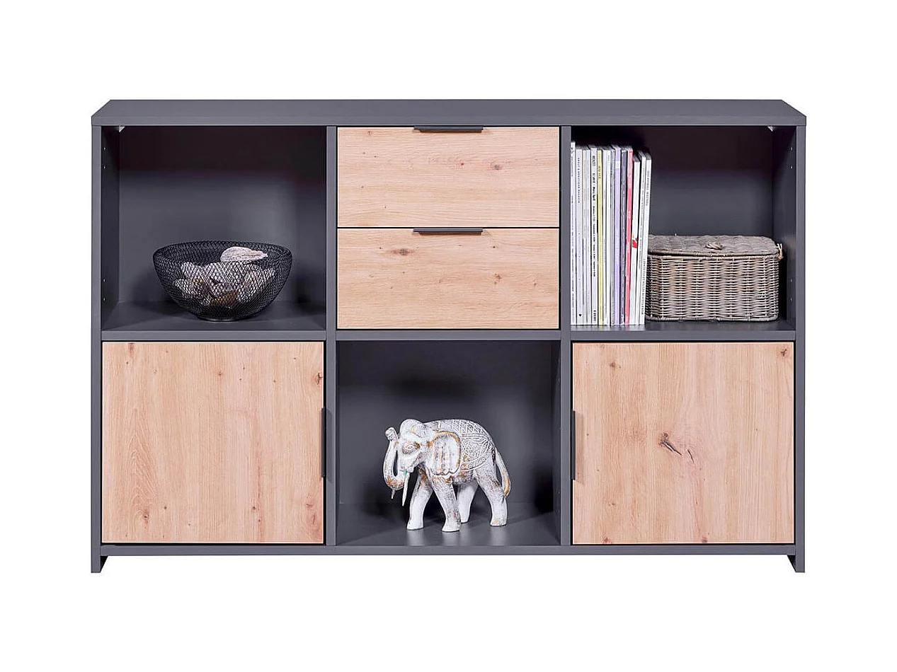 OPHELY - Meuble Multi-Rangement Anthracite et Effet Bois