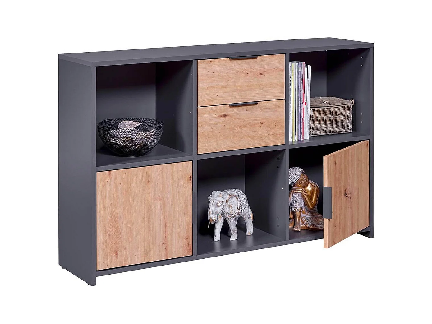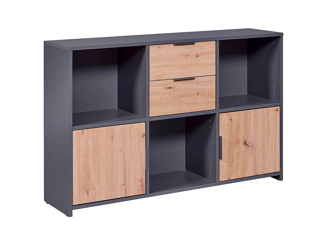 JENNY - Meuble 2 Portes 4 Tiroirs Coloris Anthracite
