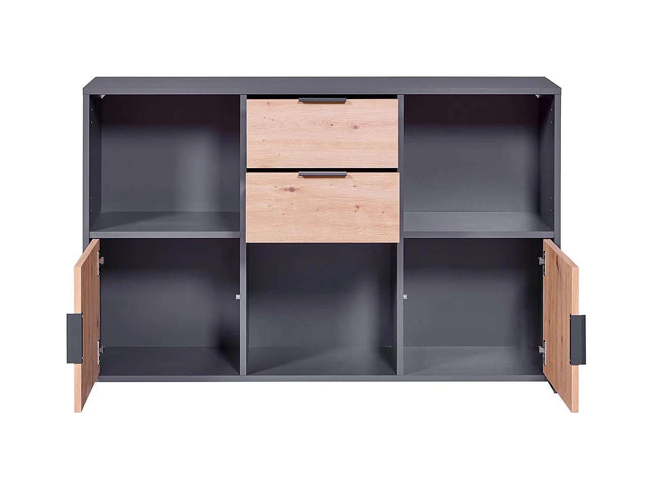Buffet LUTHER en Anthracite 2 portes 2 tiroirs 181x84x42 cm