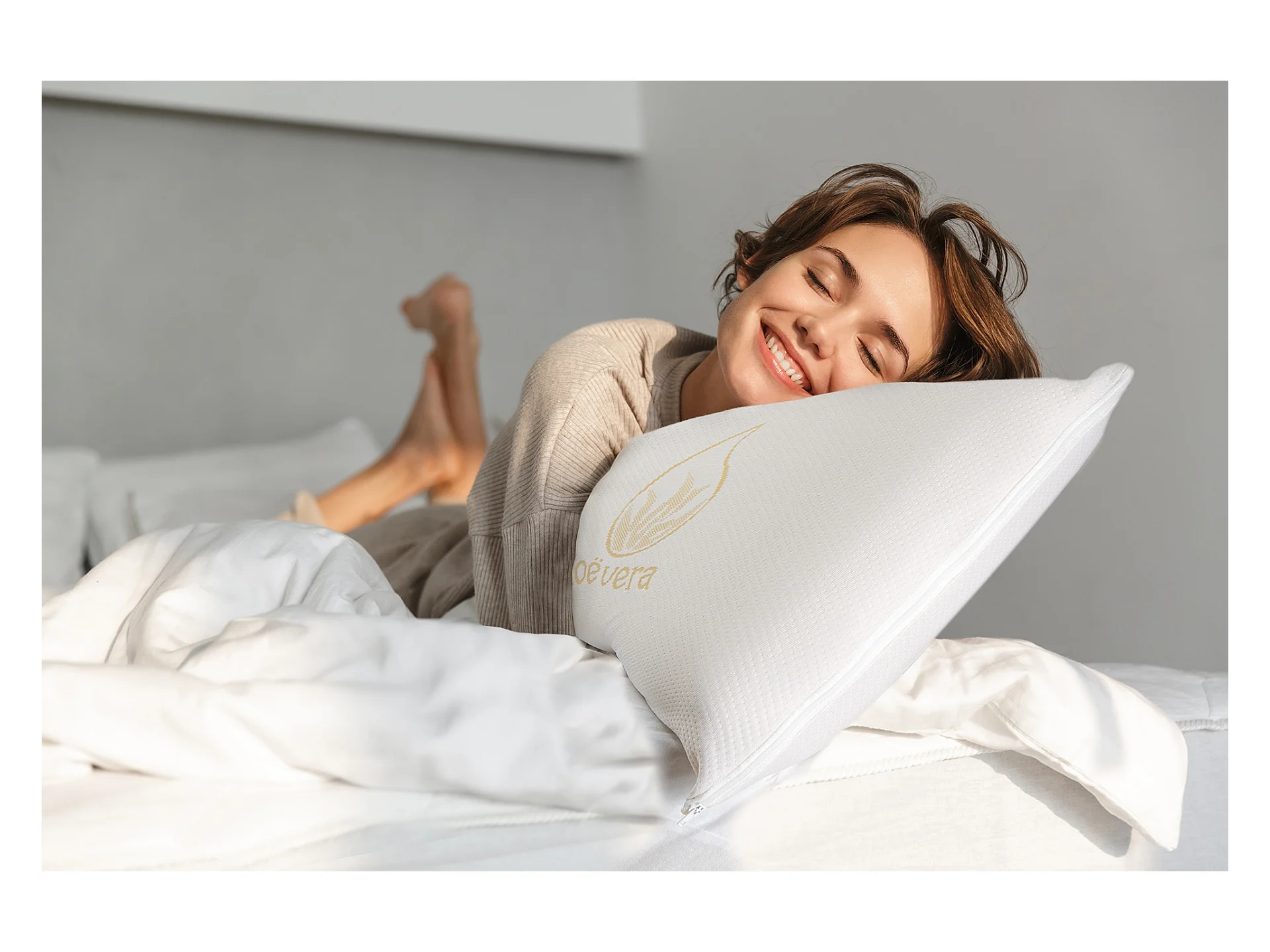 Oreiller en Mousse à Mémoire de Forme Aloe Vera - Housse Déhoussable - 40x70 Cm