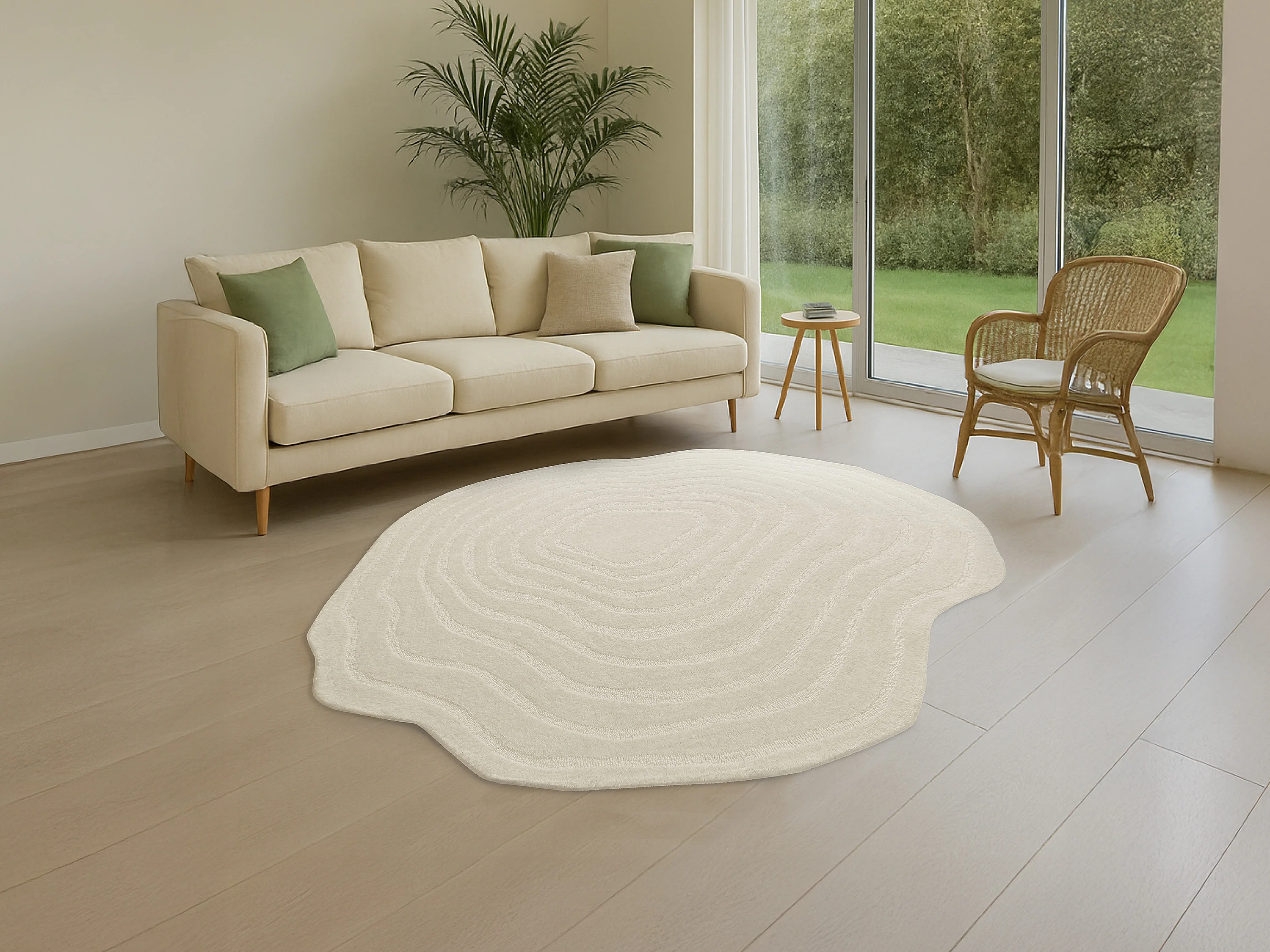 Tapis organique en relief 100% laine tufté main- D. 200 cm - Ivoire - 2100g/m² - ORENIA
