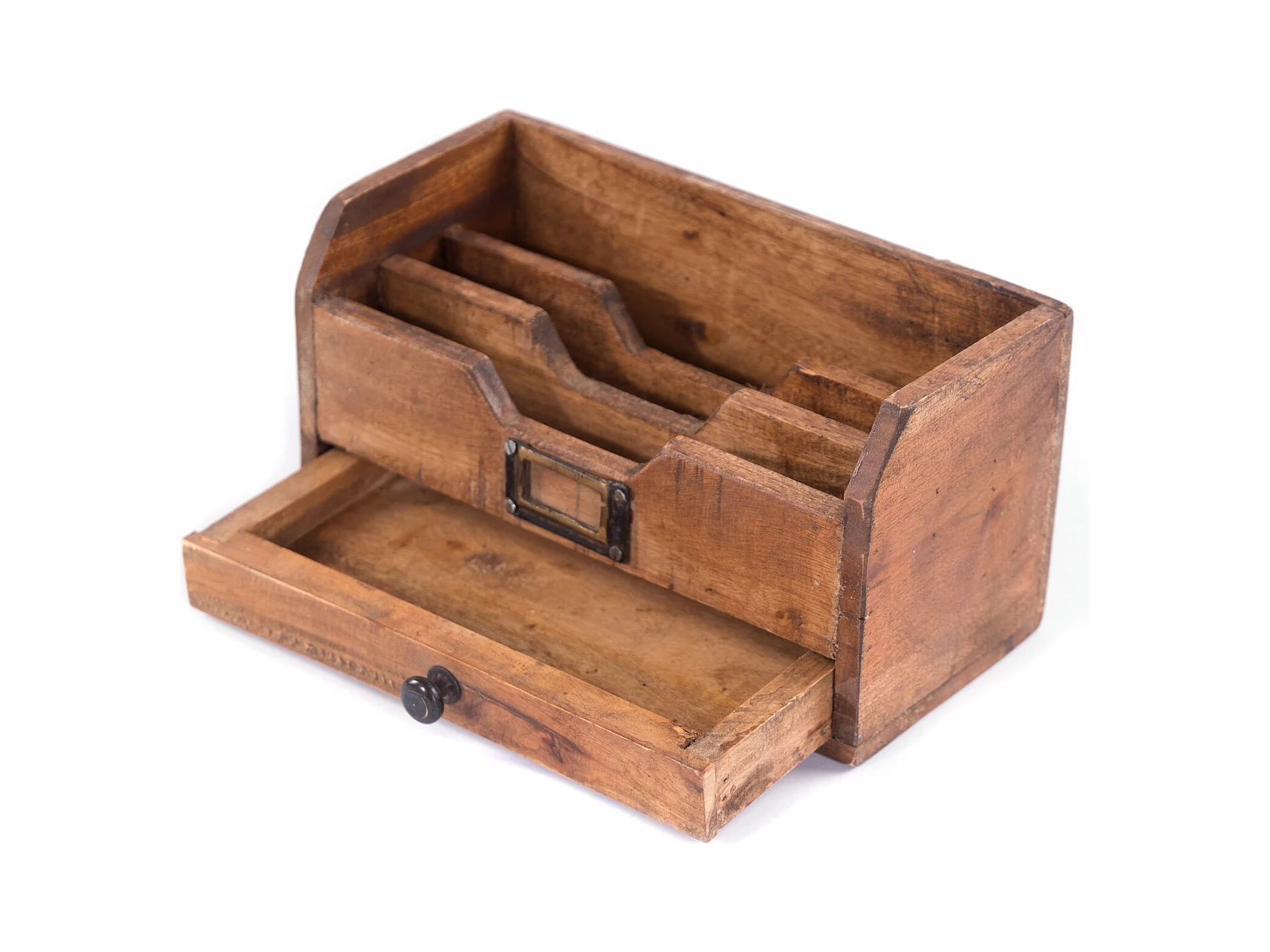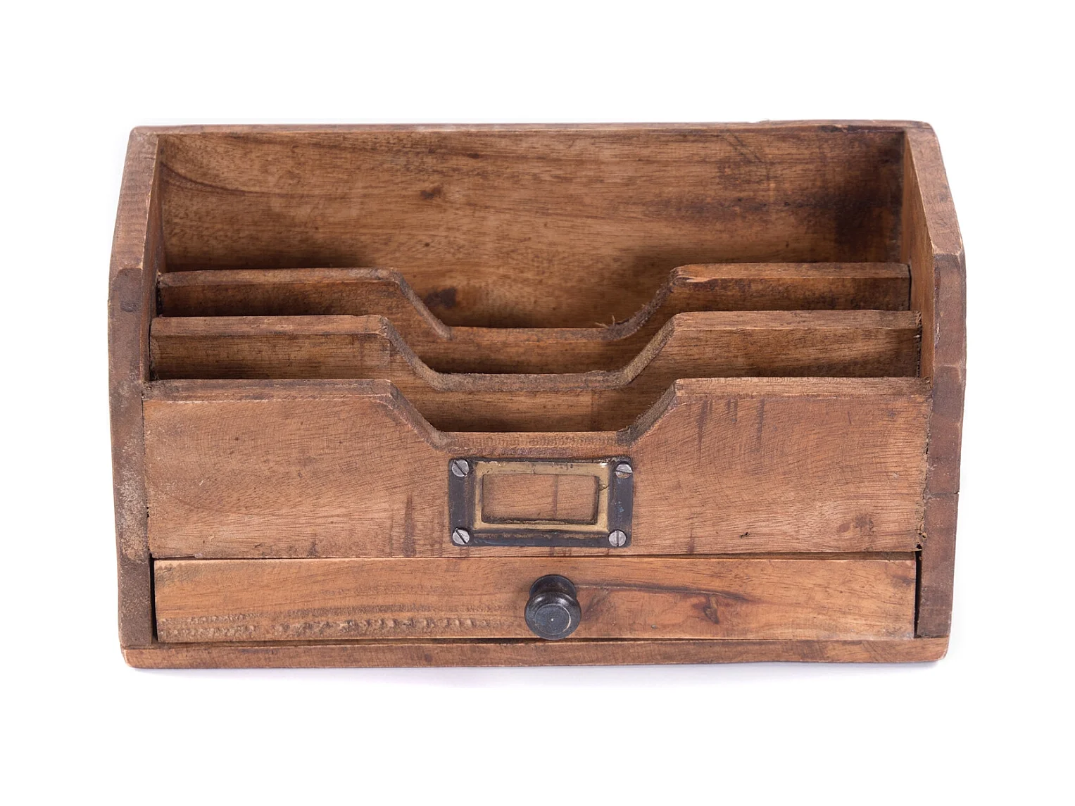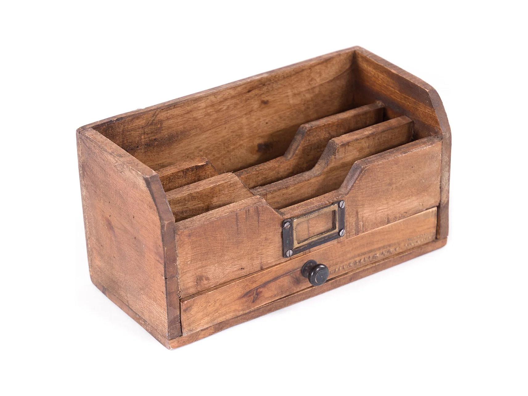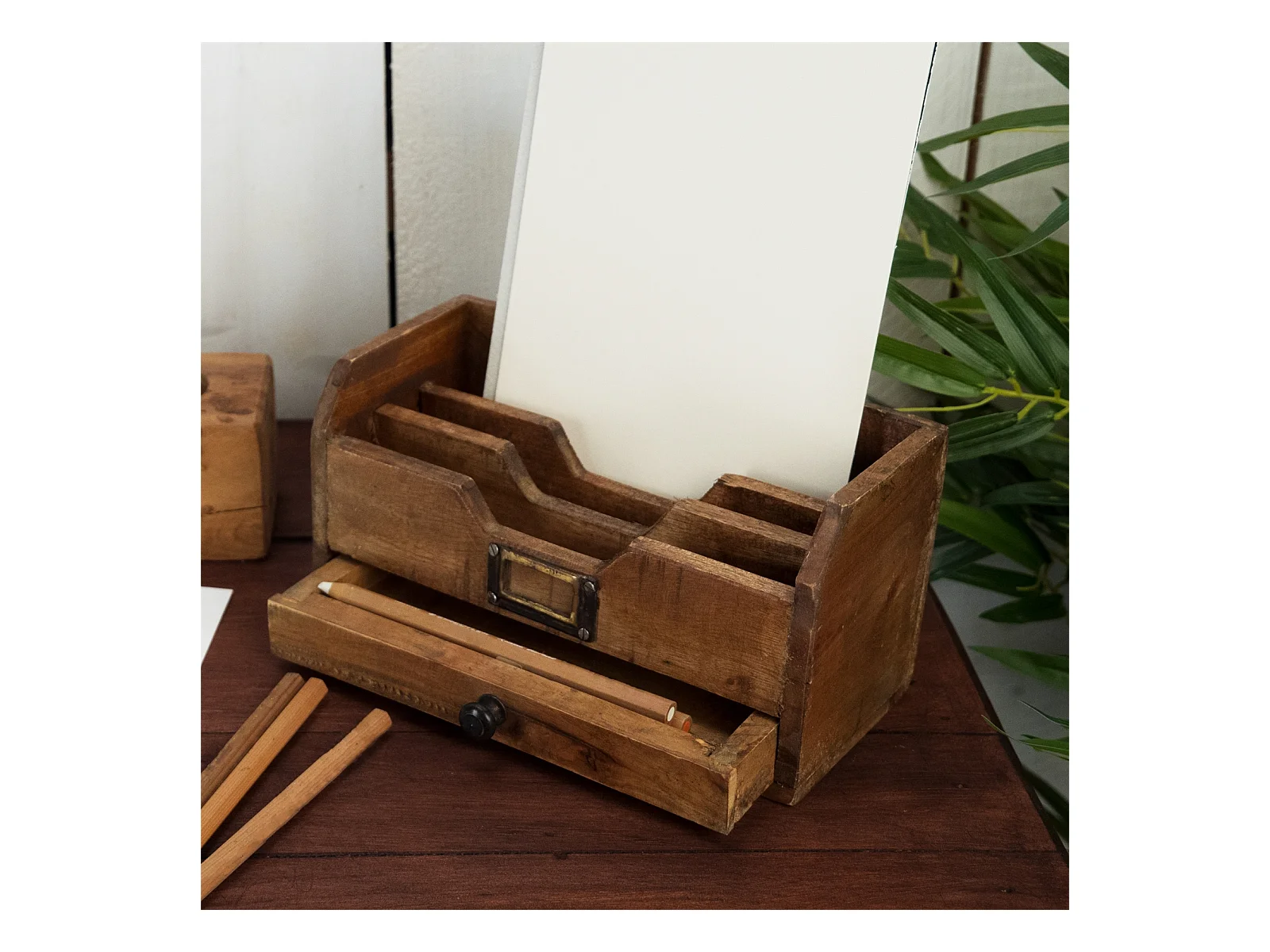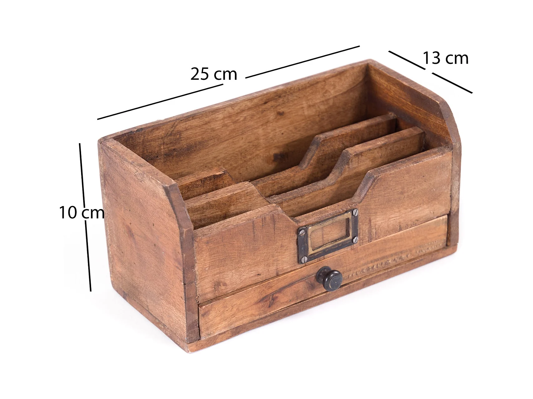 ORGANISATEUR DE BUREAU Juna Bois massif en acajou, 3 compartiments avec tiroir couleurs naturelles