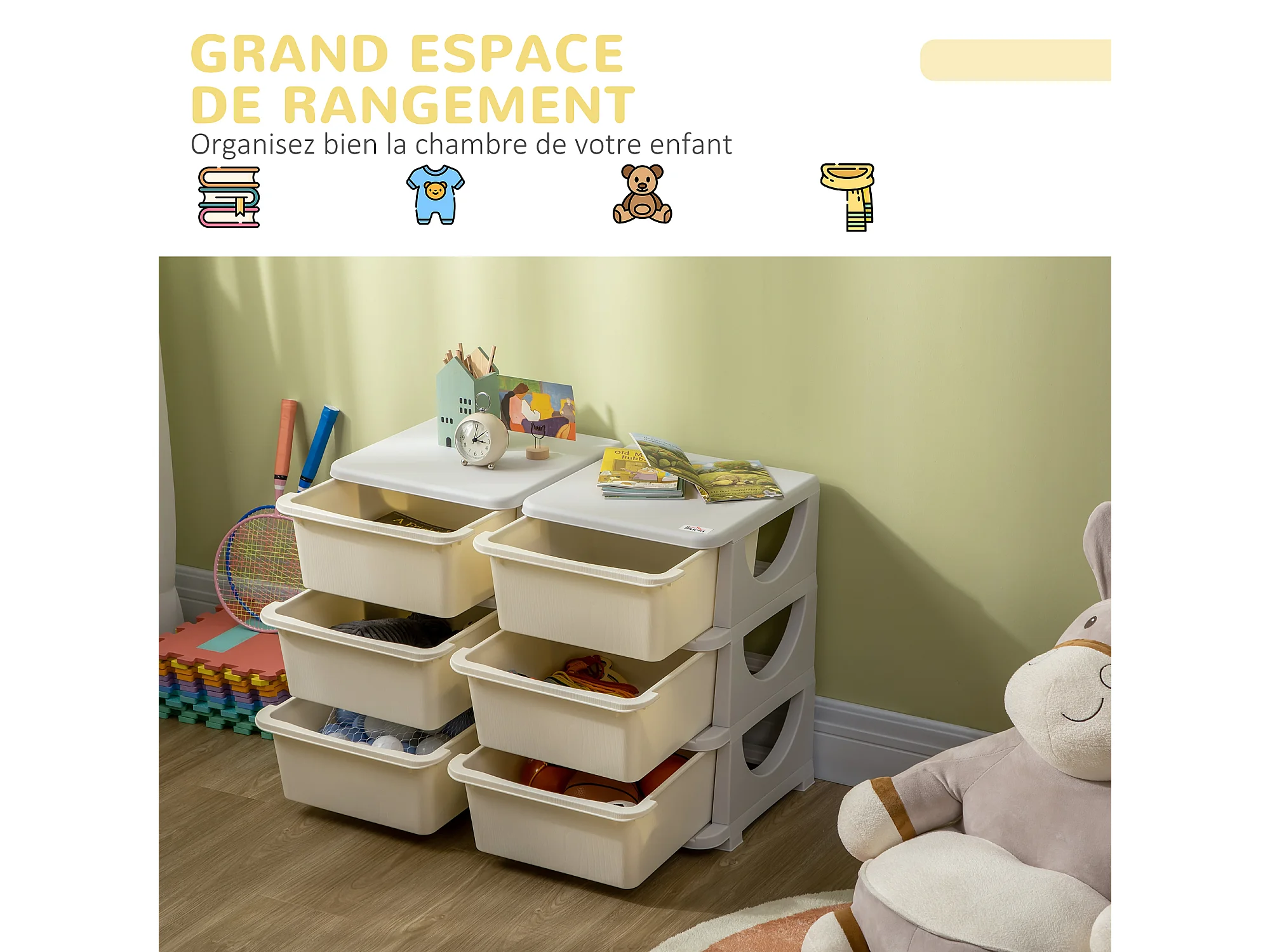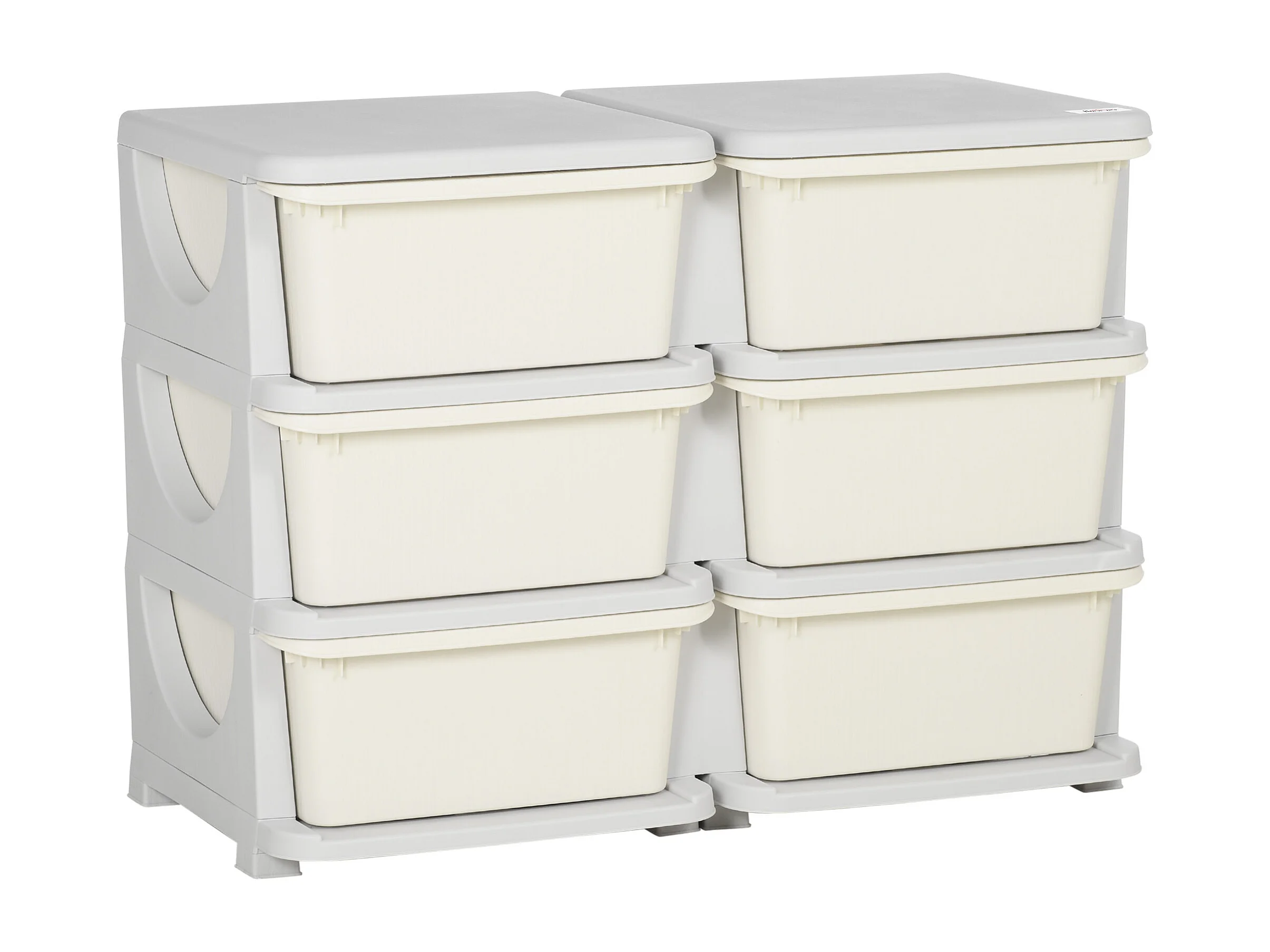 Organisateur de jouets enfant 6 tiroirs 3 niveaux gris clair crème