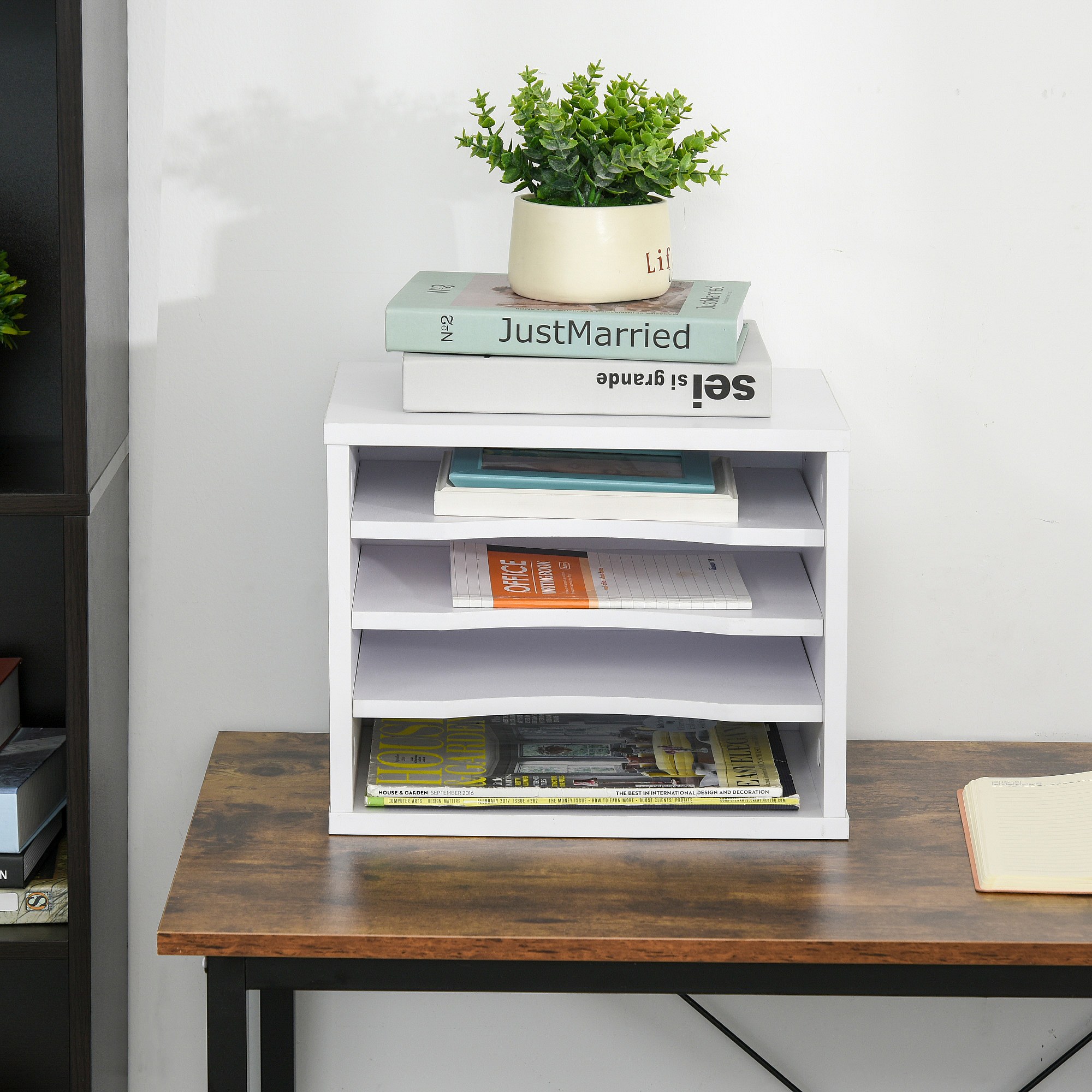 Organiseur bureau bois blanc avec 4 couches fournitures support d'imprimante dim. 35,5L x 25l x 28,6H cm