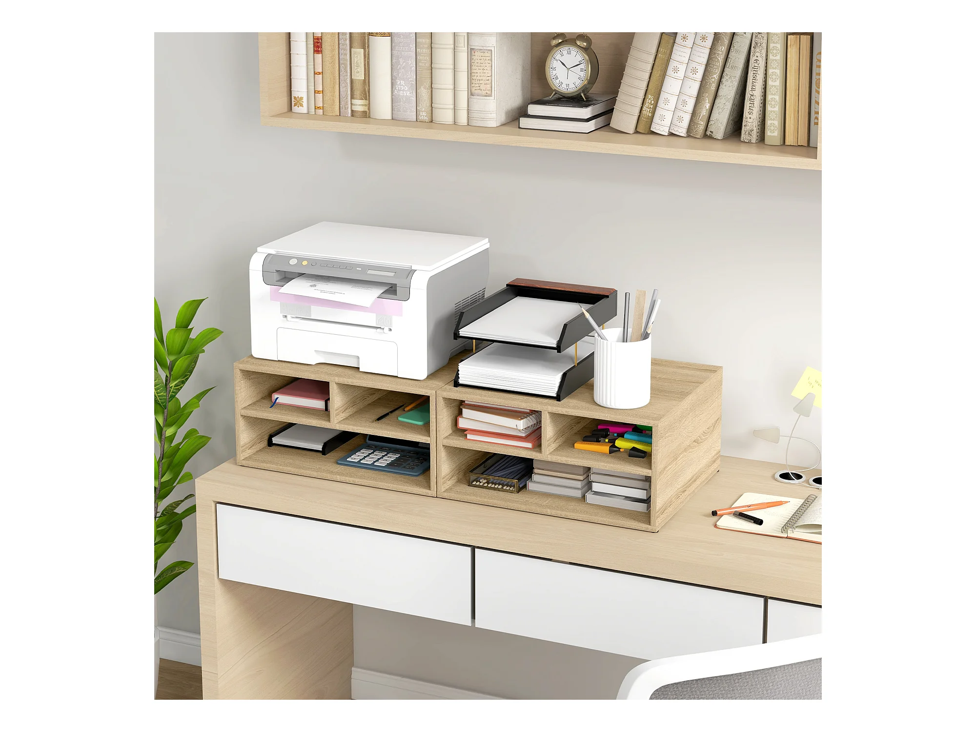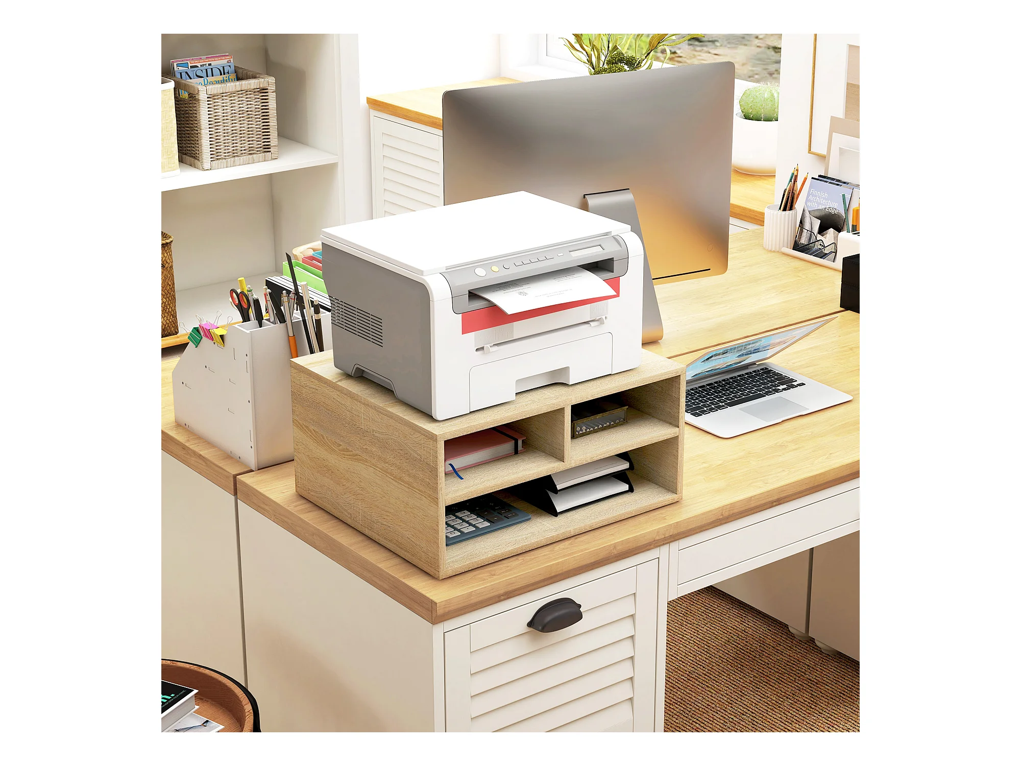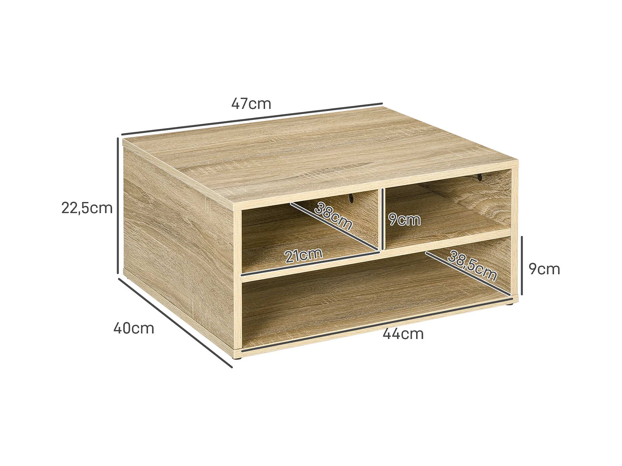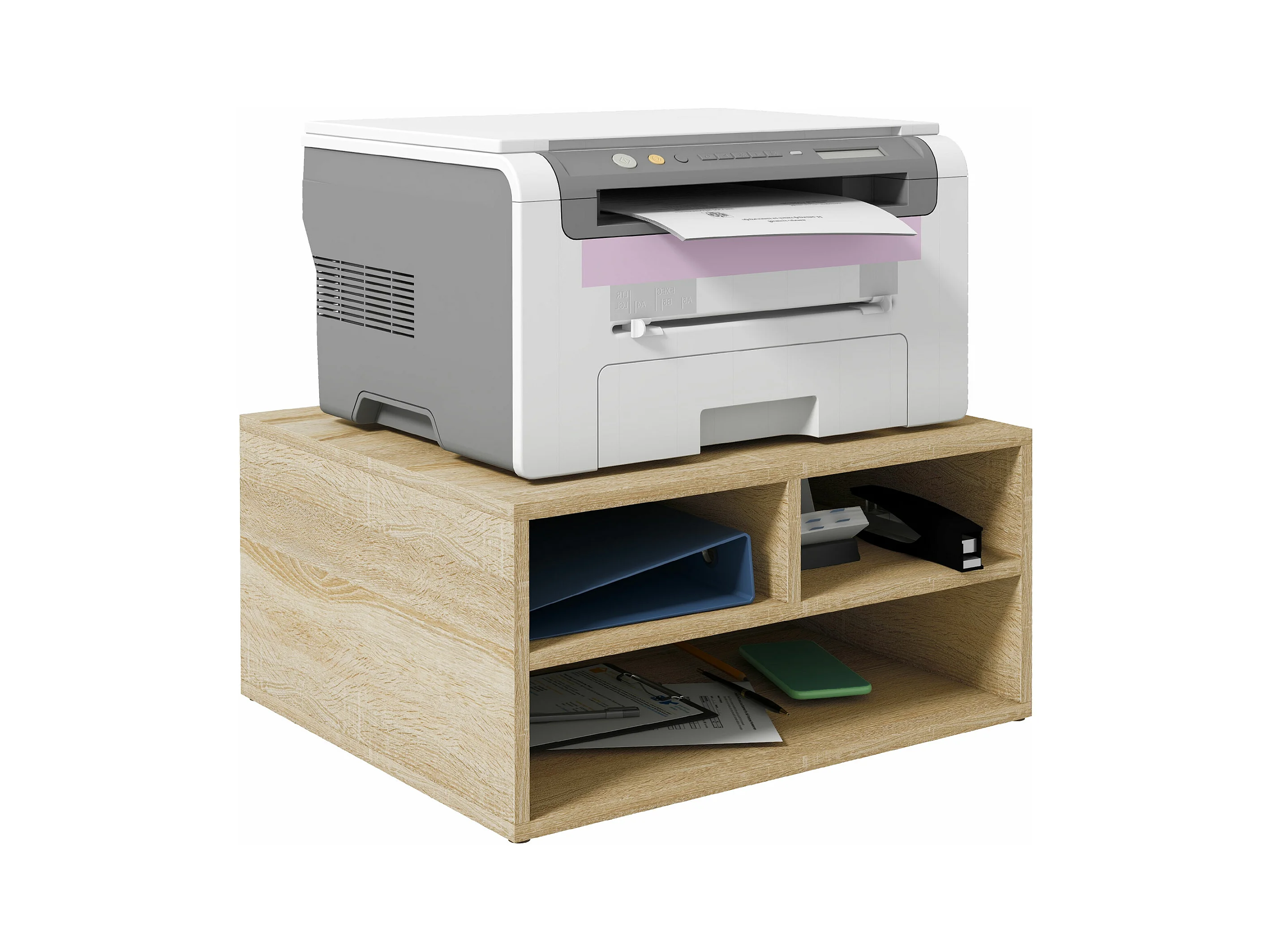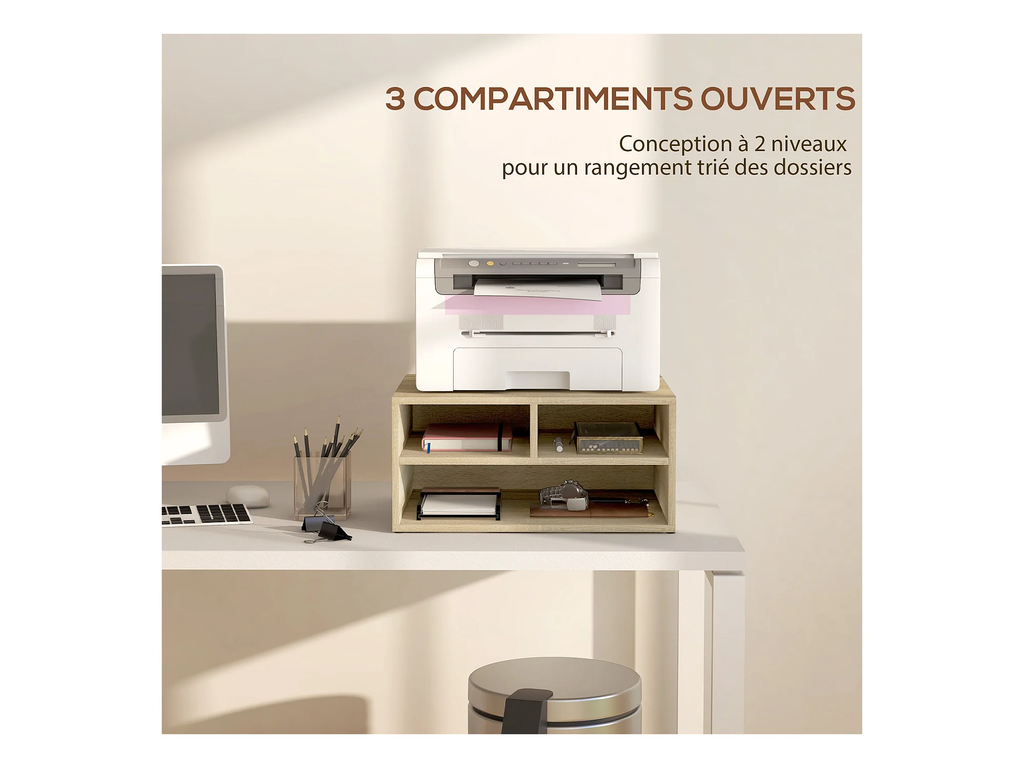 Vinsetto Support d'imprimante - caisson organiseur bureau - 3 niches, 2 tiroirs, grand plateau - panneaux particules chêne clair
