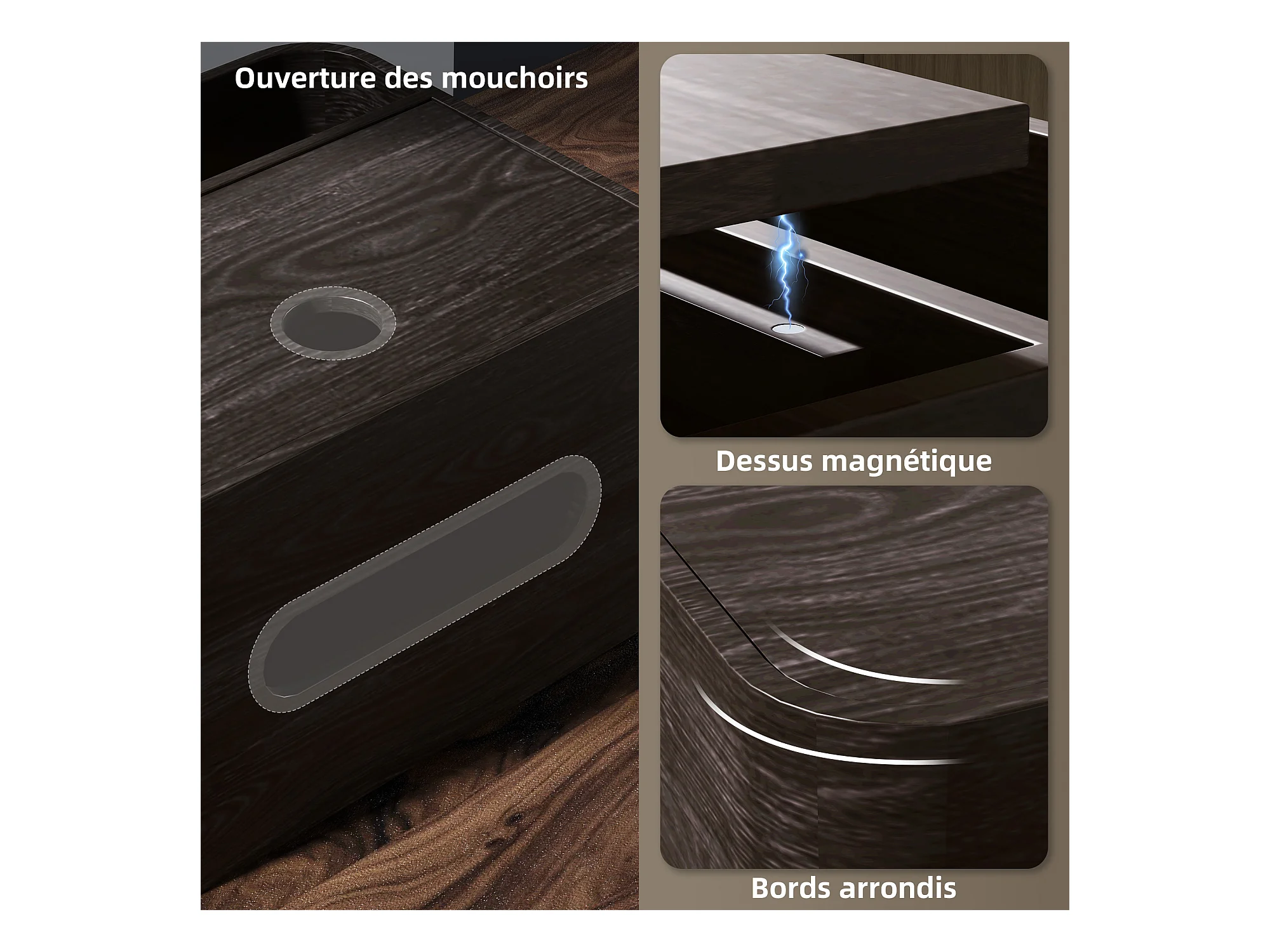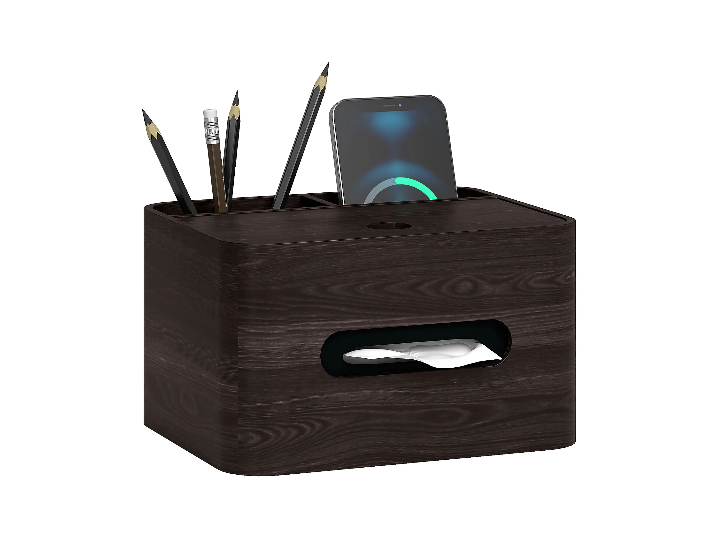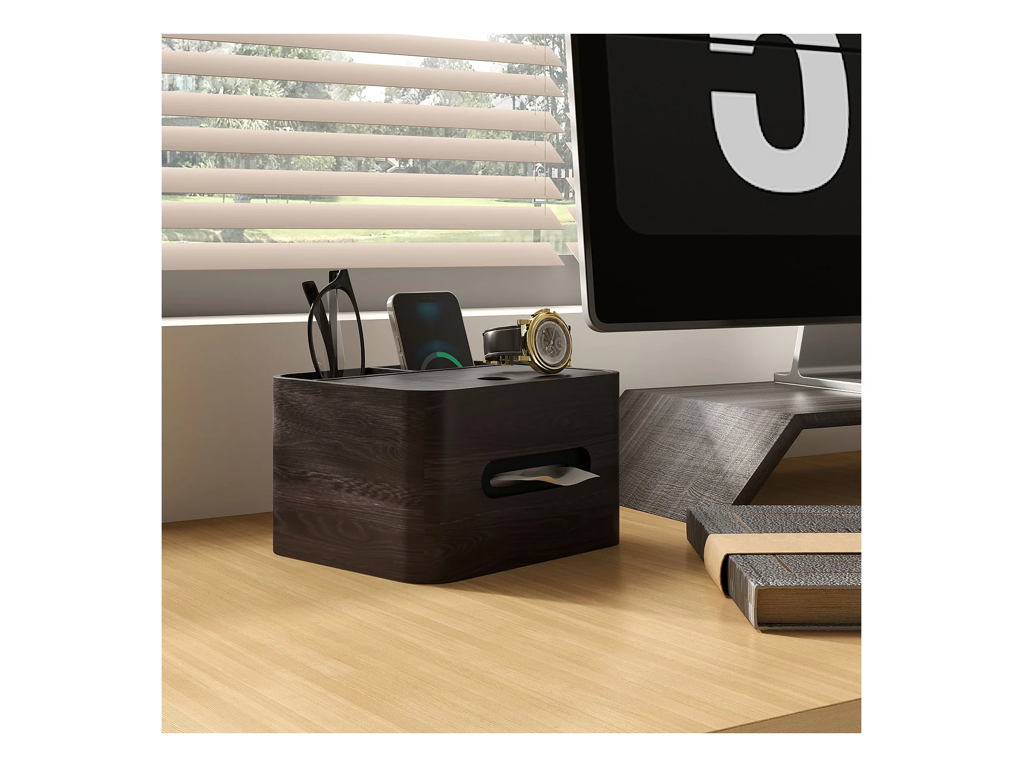 Organiseur de bureau rangement bureau - 2 compartiments, boîte à mouchoirs - aspect bois foncé