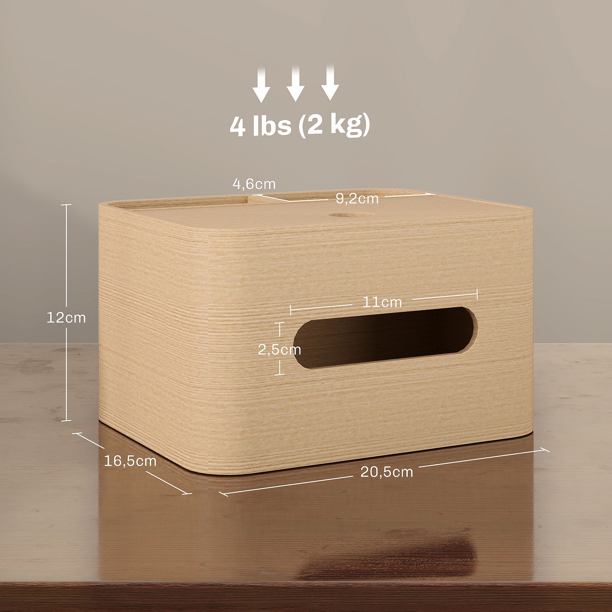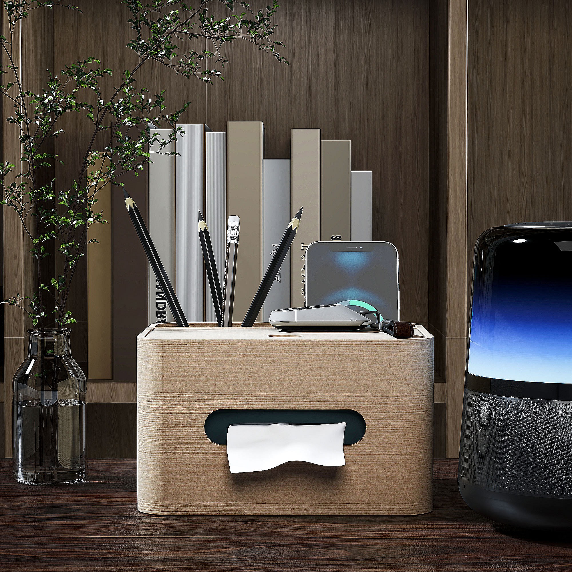 Organiseur de bureau rangement bureau - 2 compartiments, boîte à mouchoirs - aspect bois naturel