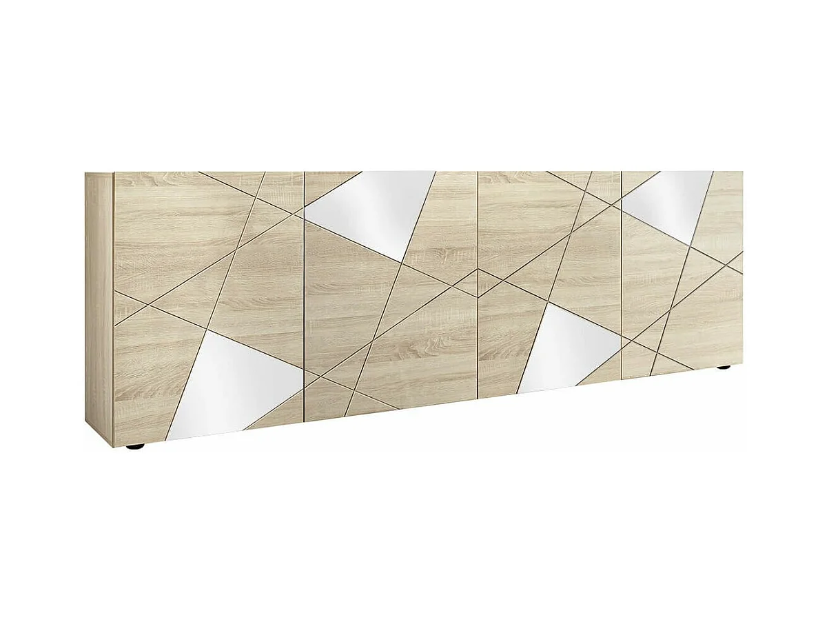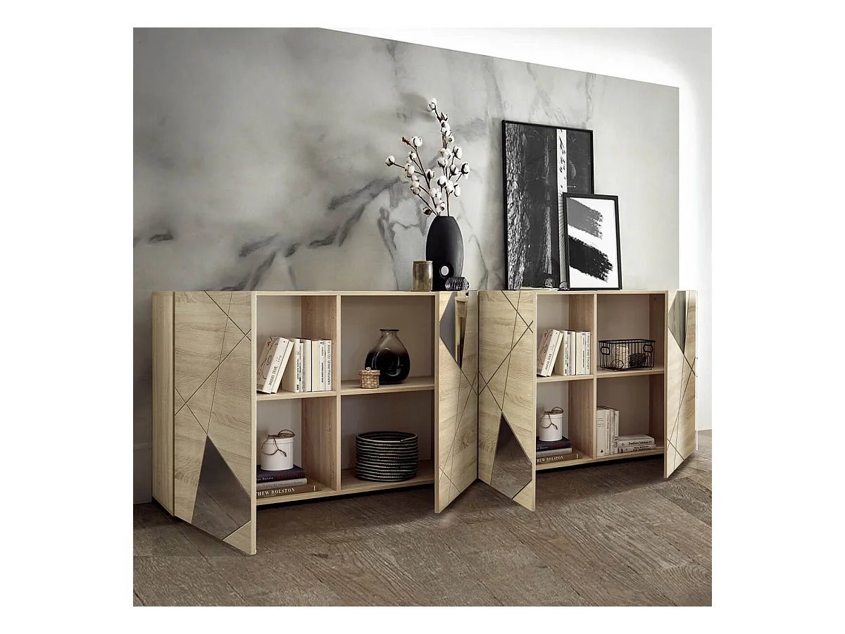 ORIANA - Buffet 4 Portes Finition Bois Samoa avec Sérigraphies et Miroirs