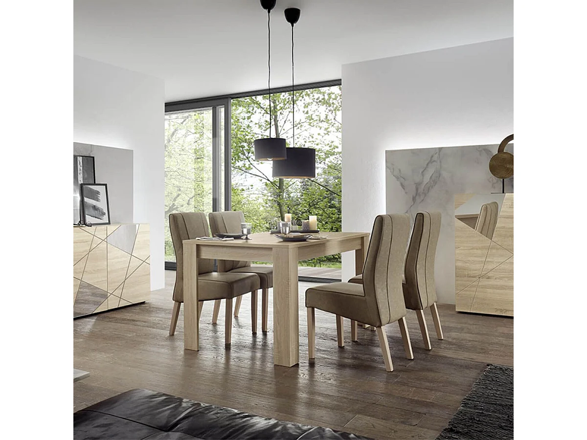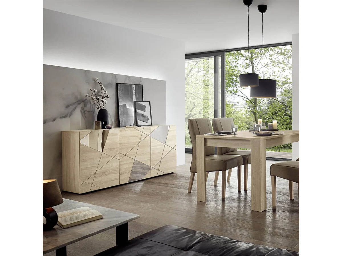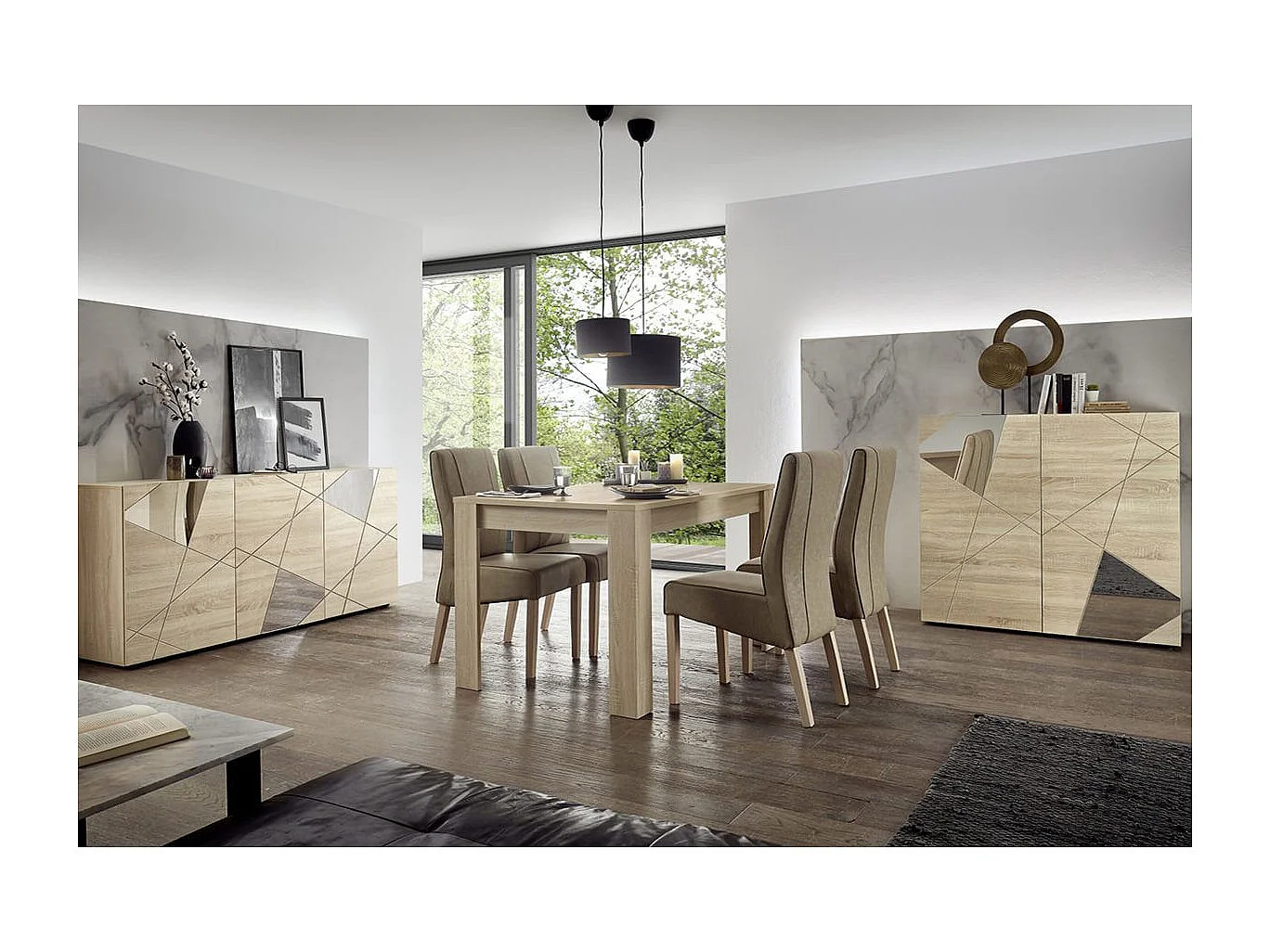 ORIANA - Ensemble Séjour Finition Bois Samoa avec Sérigraphies et Miroirs