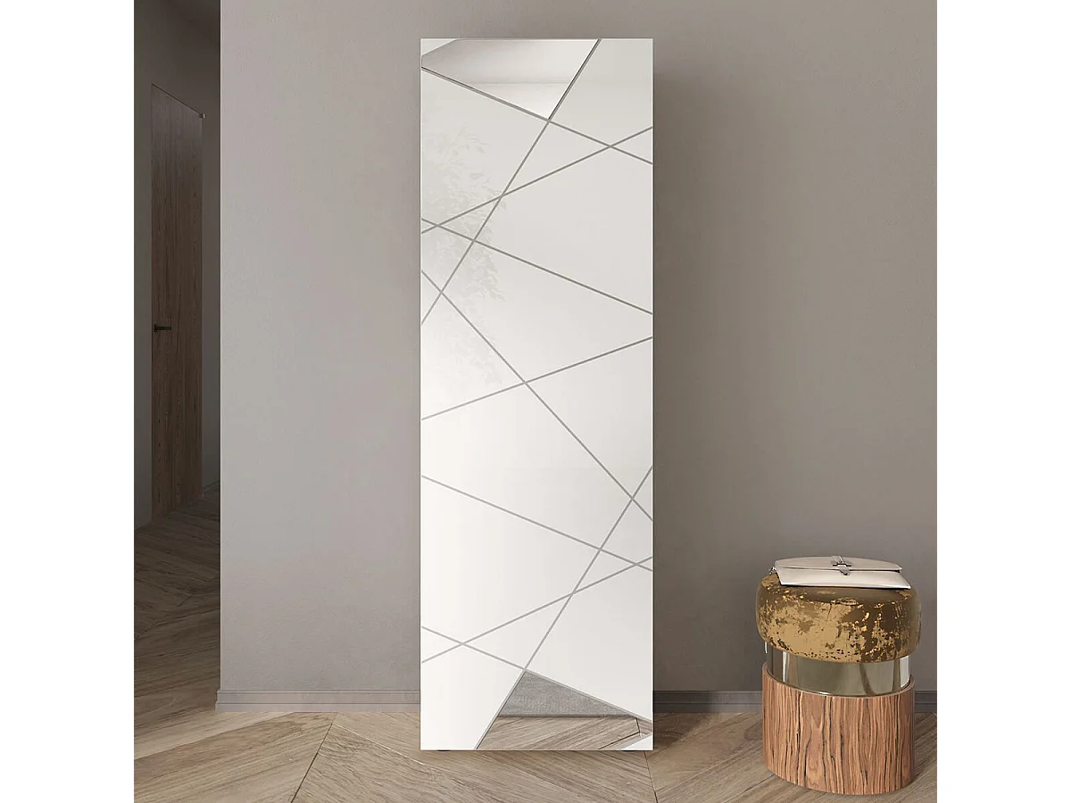 ORIANA - Penderie 1 porte avec 2 étagères Blanc Laqué avec Sérigraphies et Miroirs