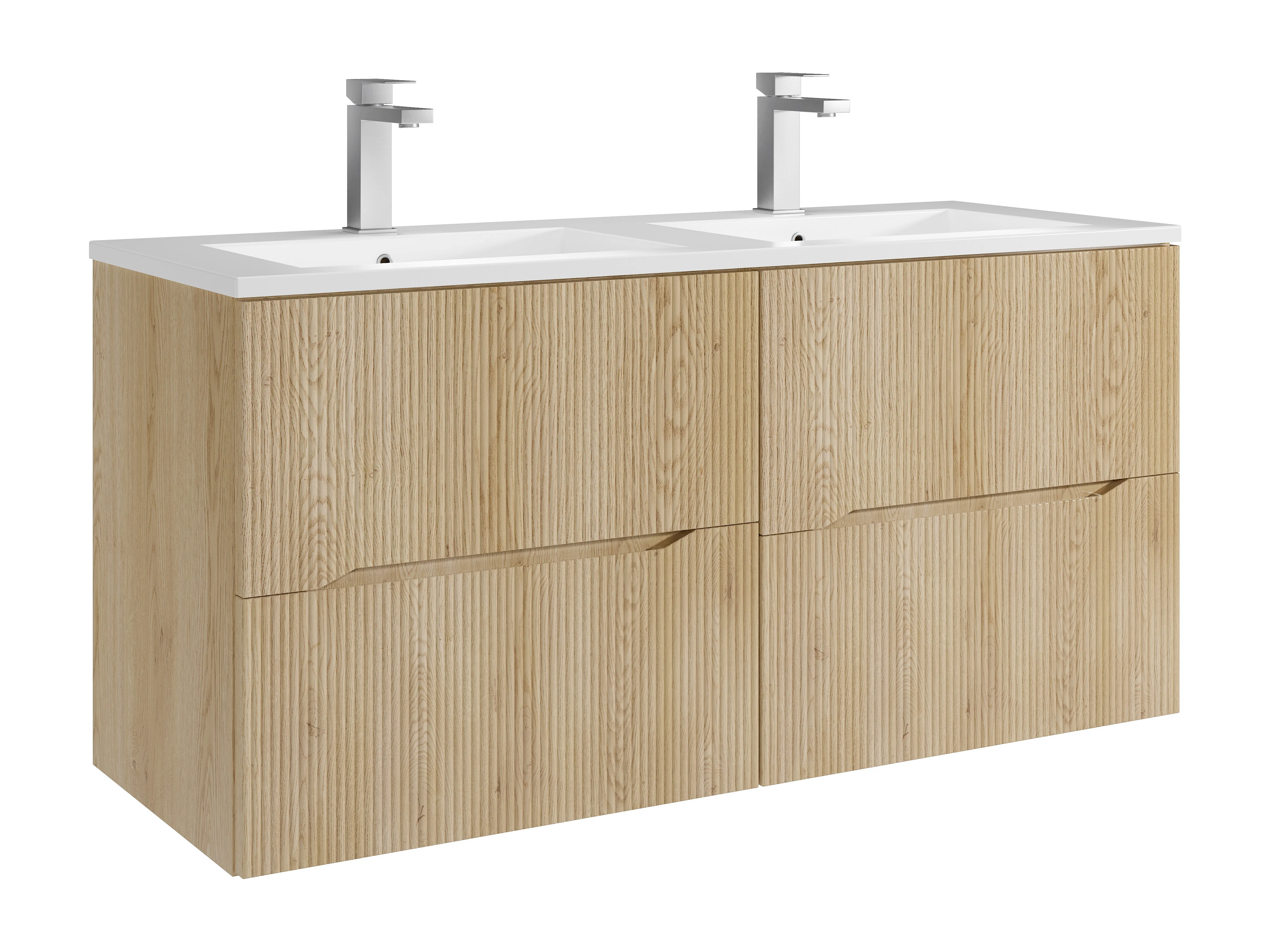 Meuble de salle de bain suspendu strié avec vasque à encastrer et robinet - Naturel clair - 120 cm - ORISO