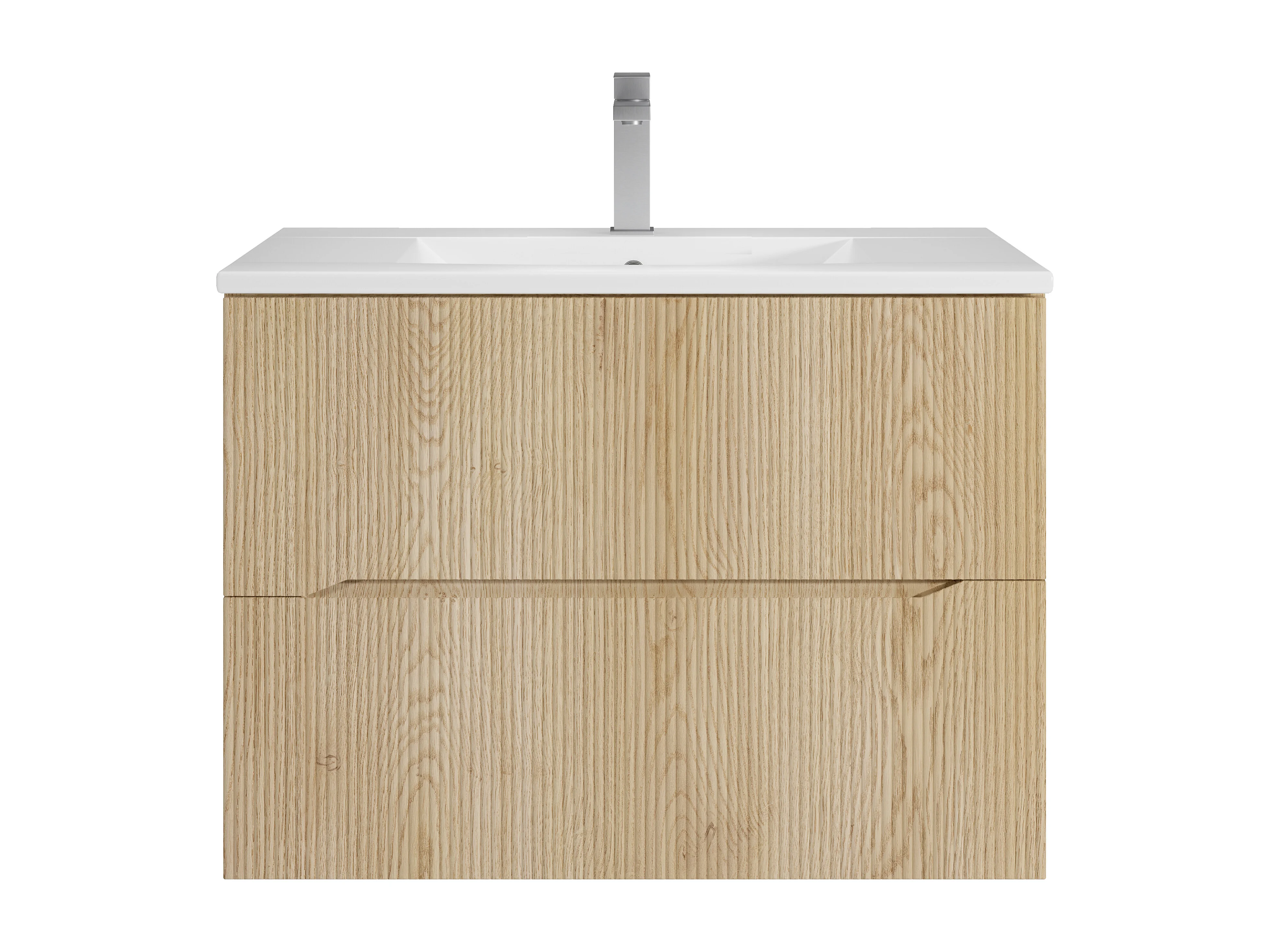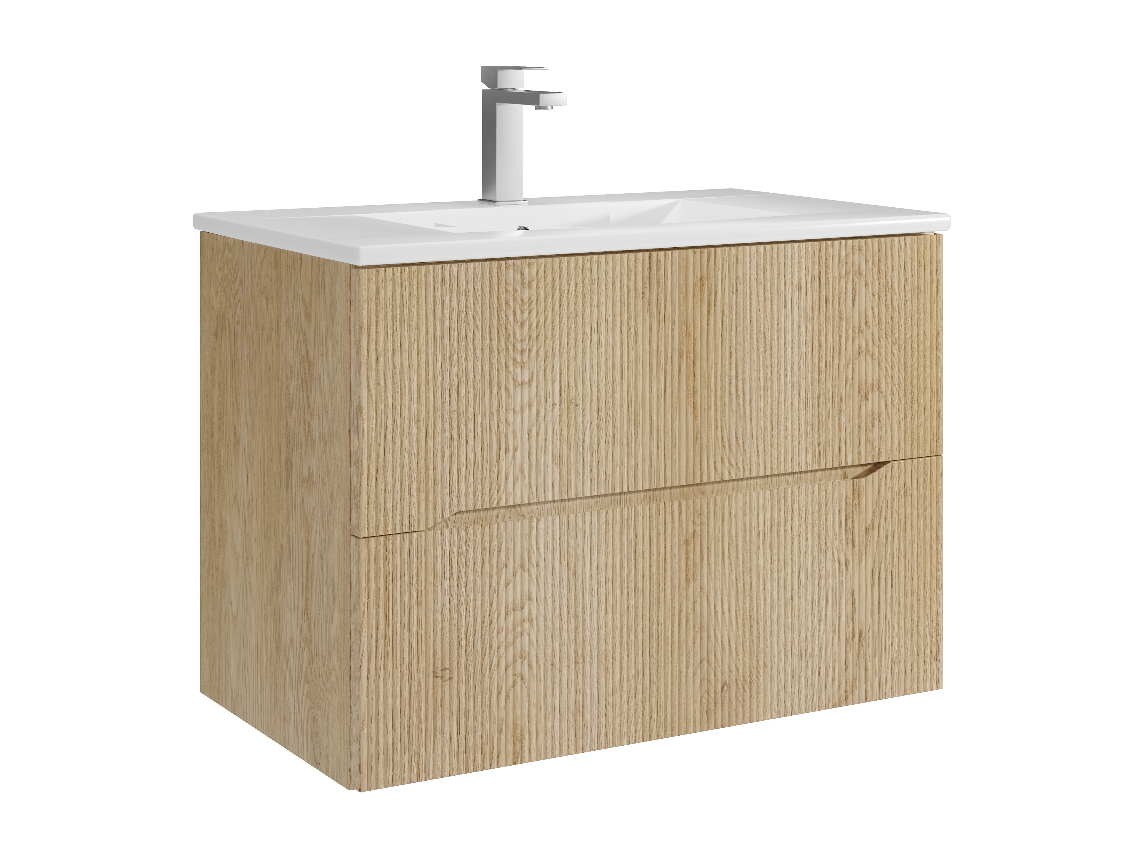 Meuble de salle de bain suspendu strié avec vasque à encastrer et robinet - Naturel clair - 80 cm - ORISO