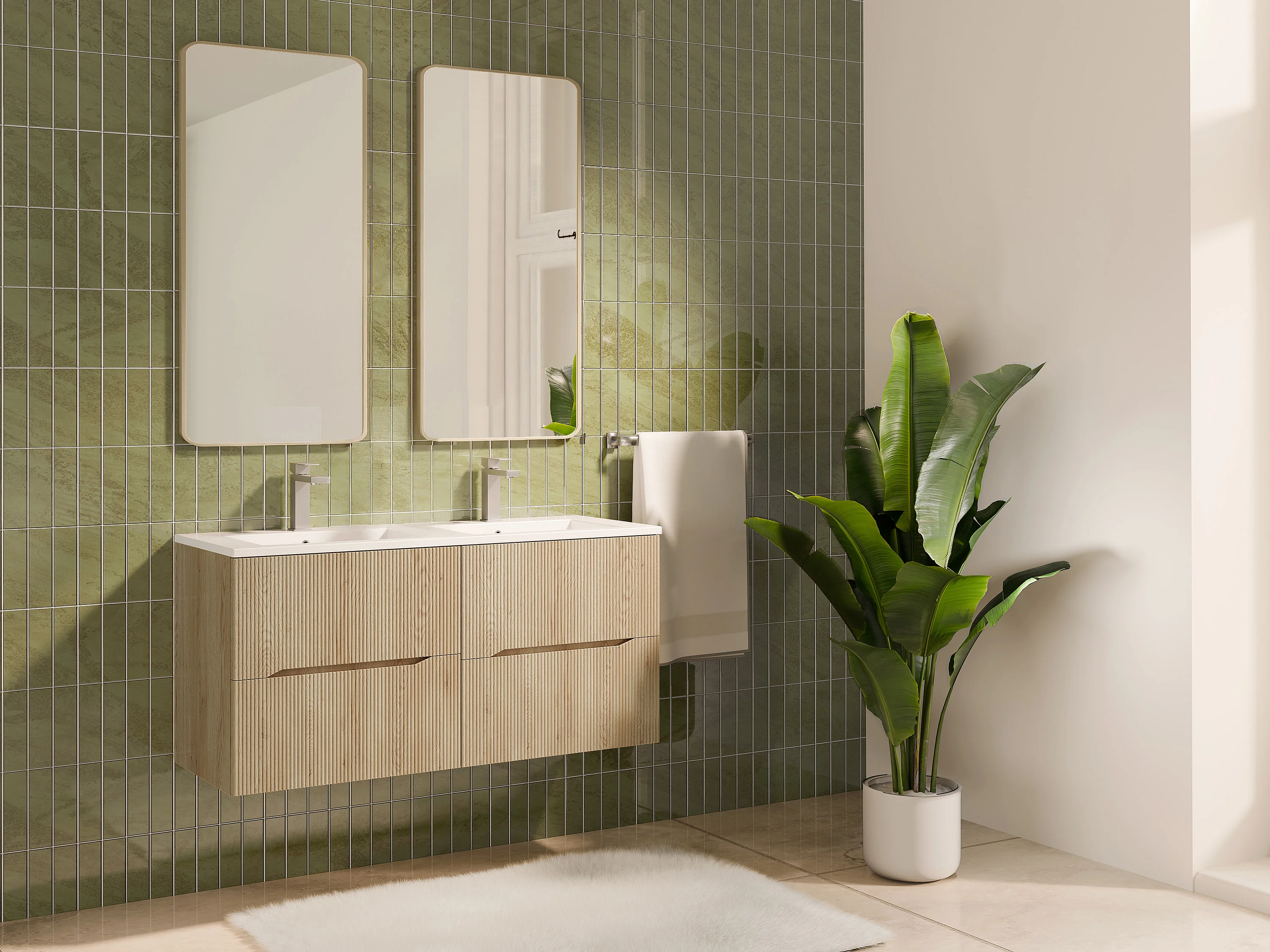 Meuble de salle de bain suspendu strié avec vasque à encastrer - Naturel clair - 120 cm - ORISO