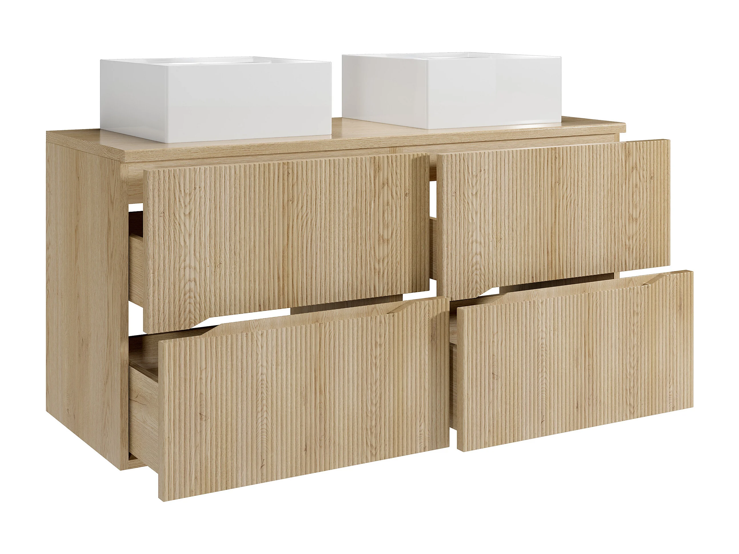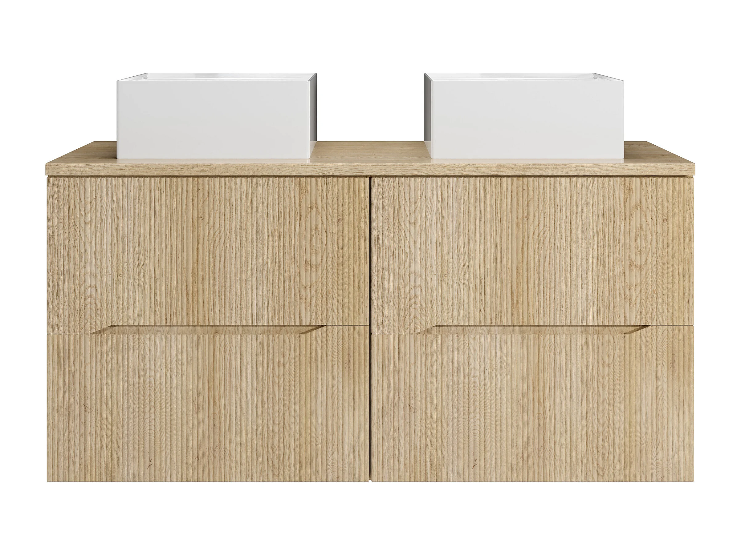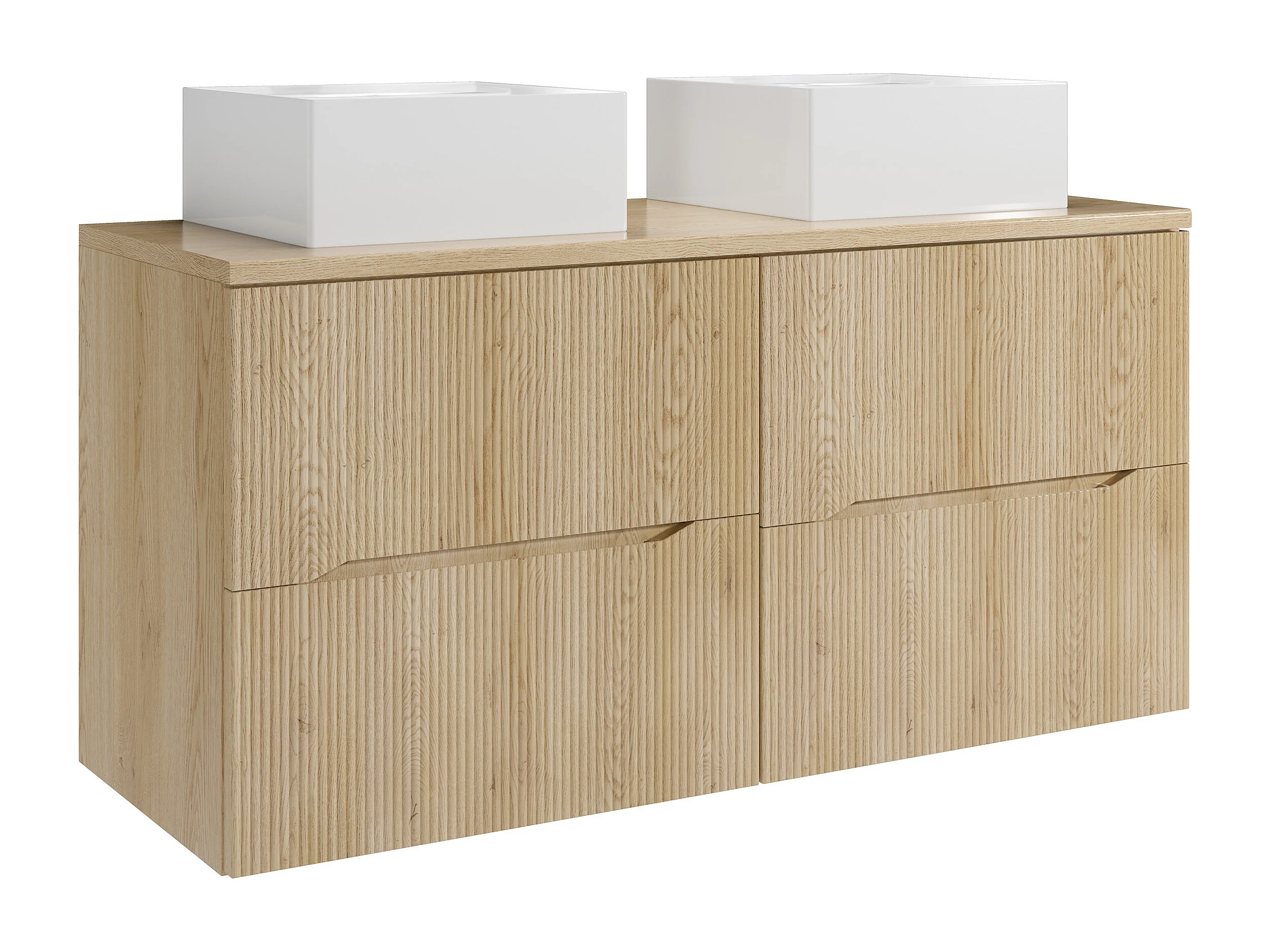 Meuble de salle de bain suspendu strié avec vasque à poser carrée - Naturel clair - 120 cm - ORISO