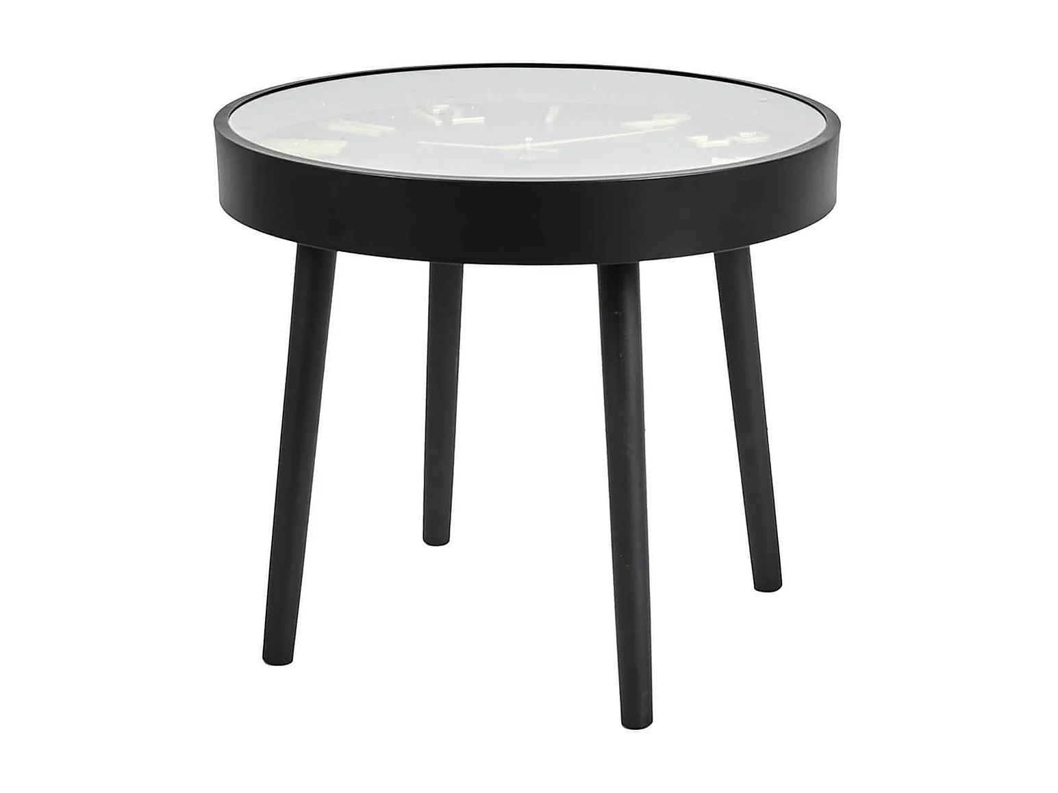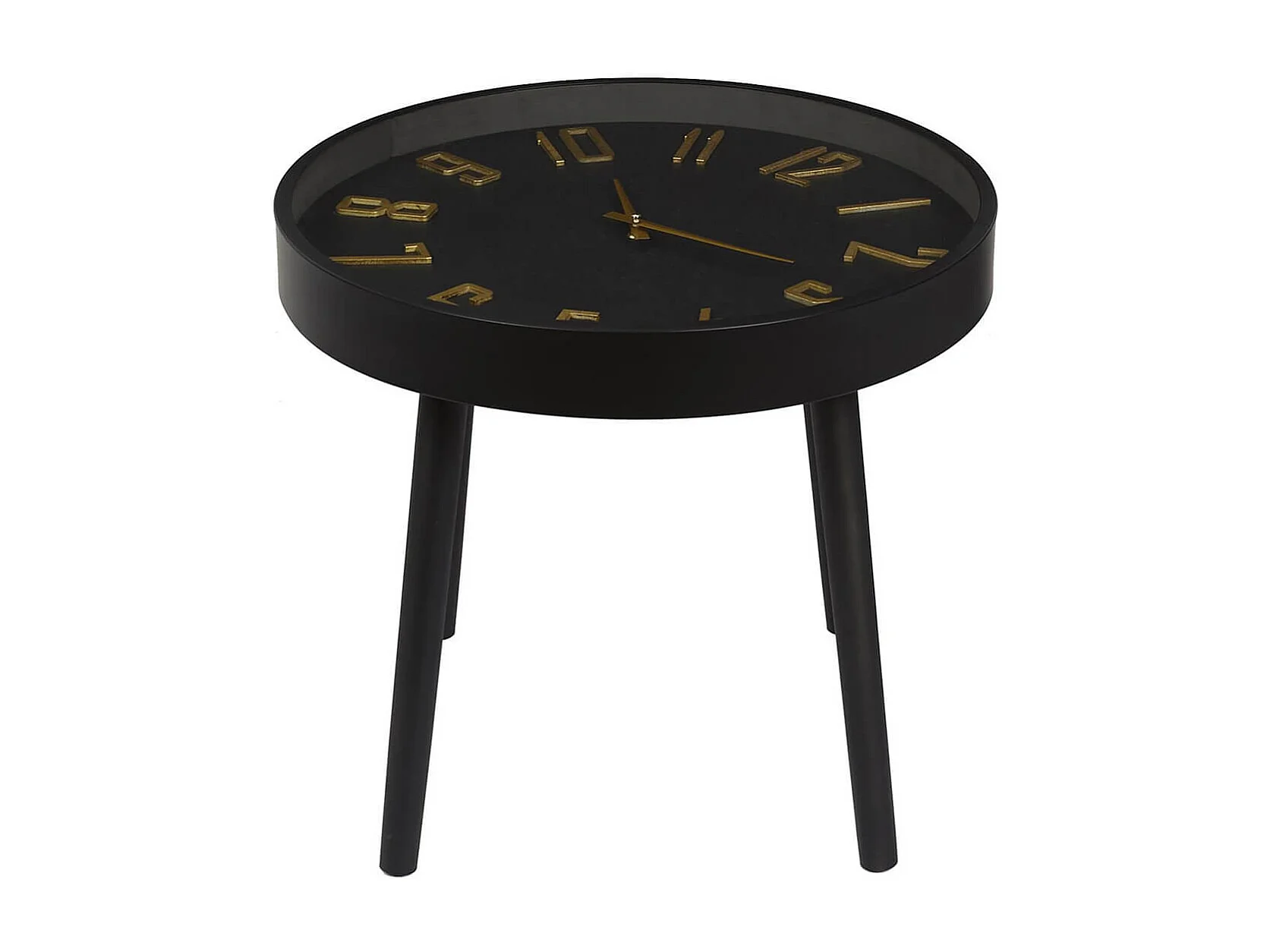 ORLAR - Table d'Appoint Horloge Silencieuse Ø70cm Noir et Or