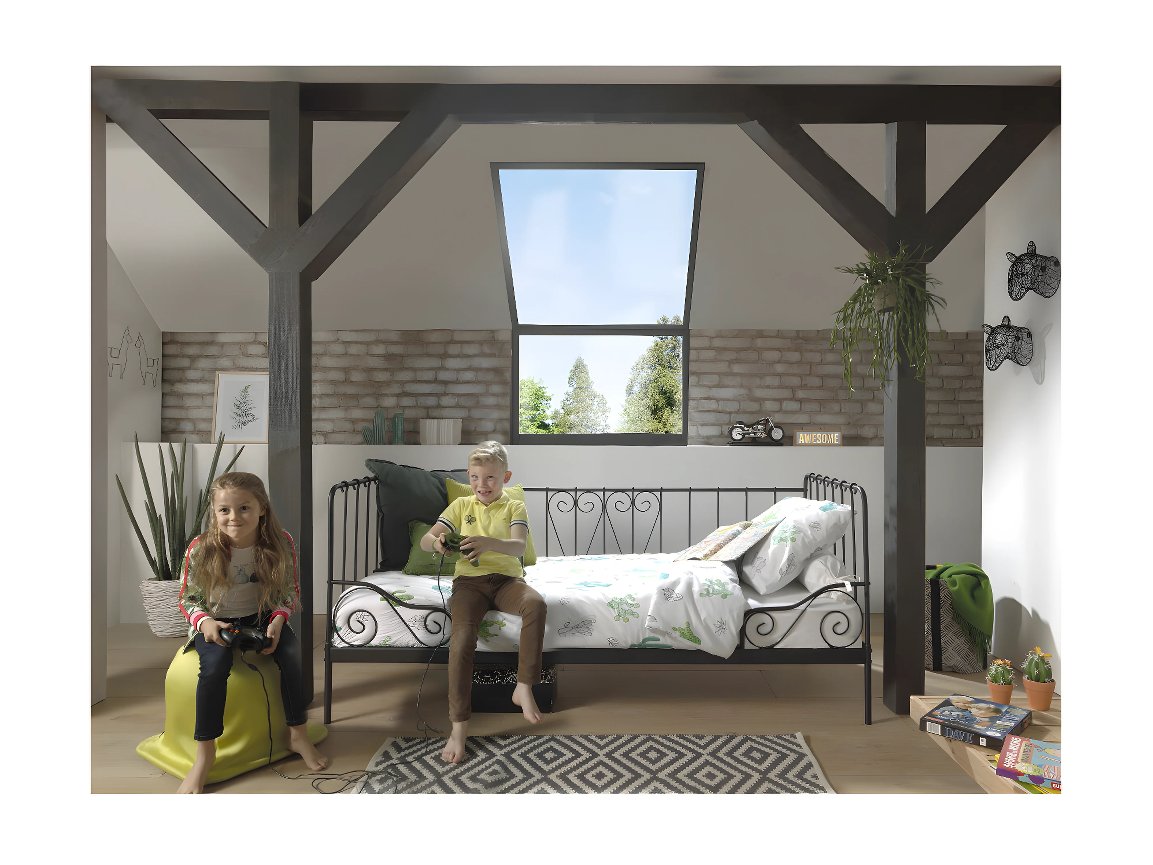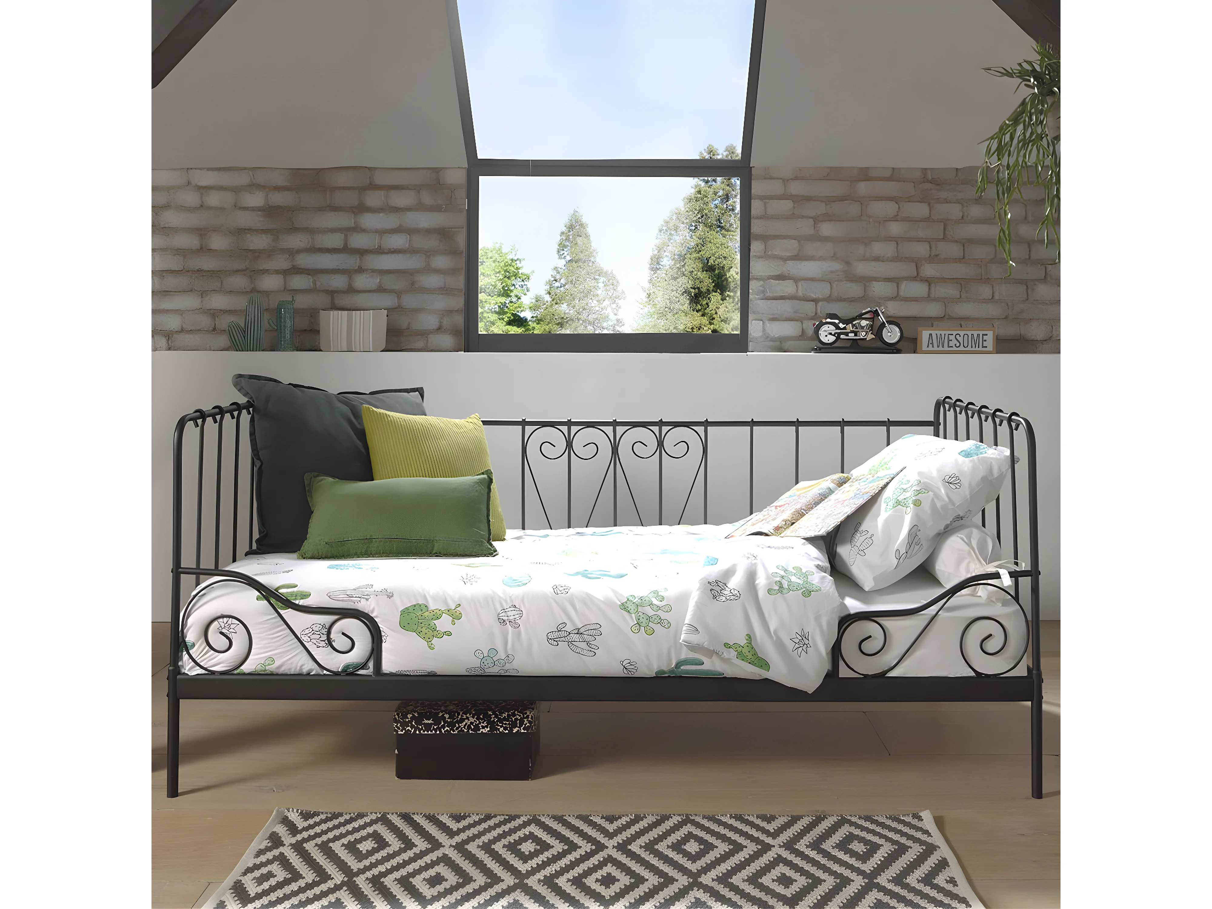 ORNAM - Lit Banquette 90x200cm Métal Poudré Noir