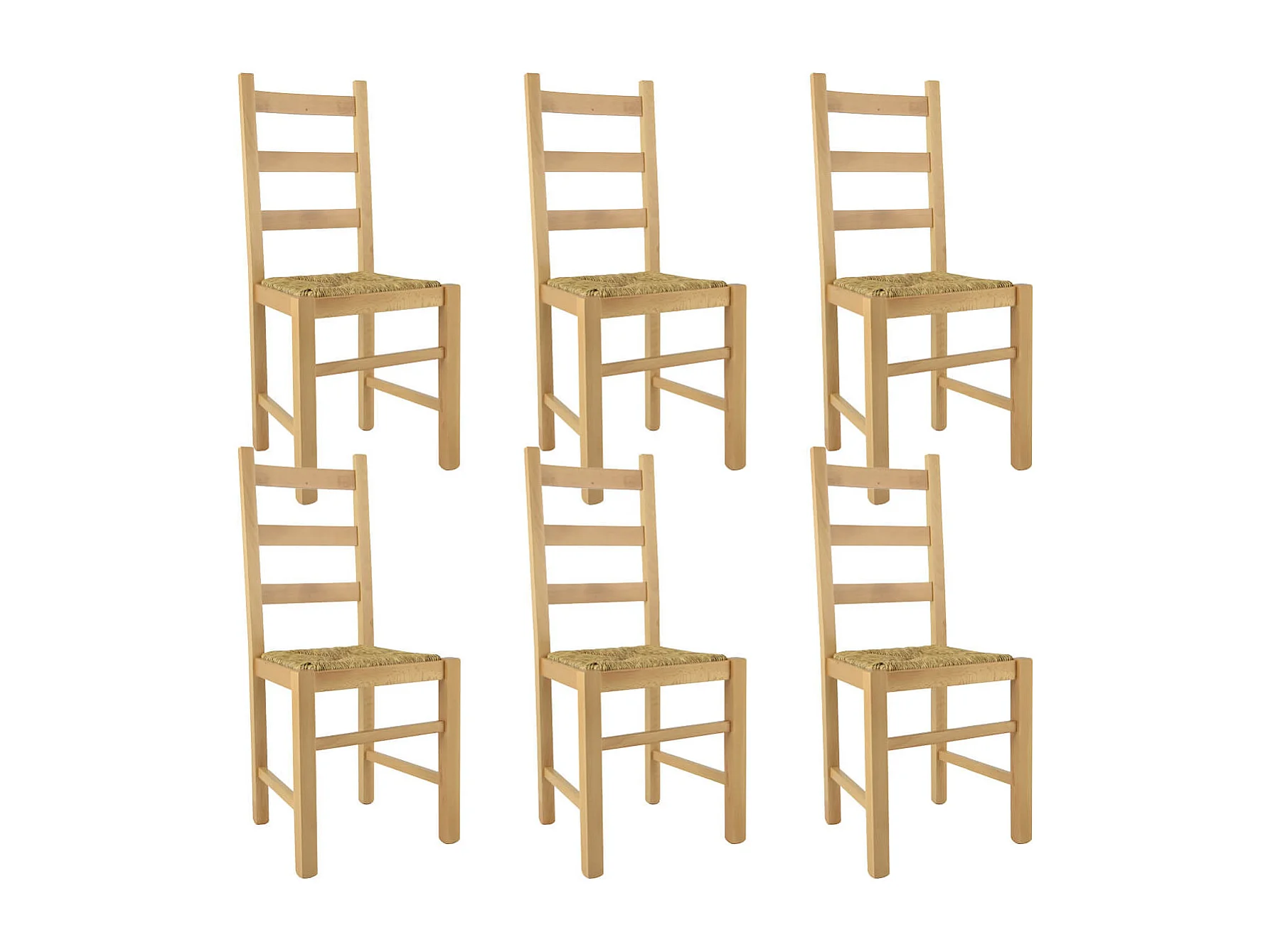 ORTA - Lot de 6 Chaises Naturelles et Assises en Paille