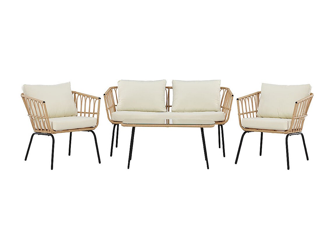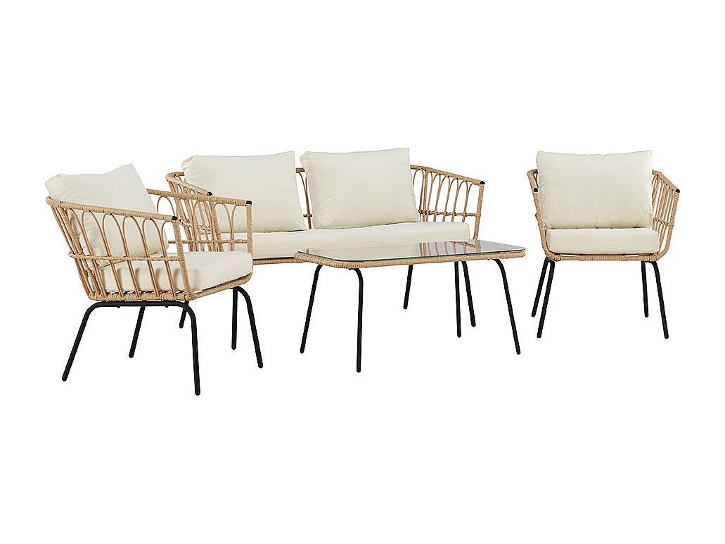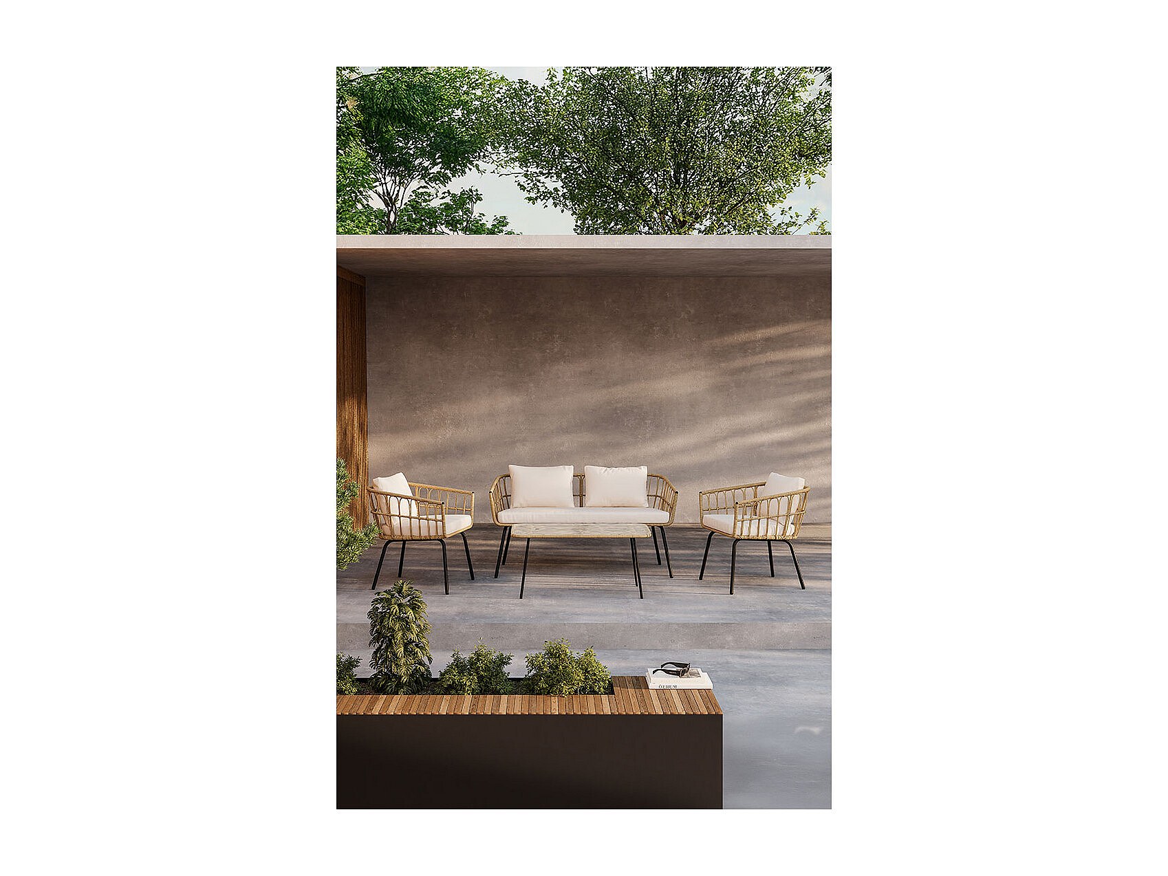 Salon de Jardin 4 Places en Rotin "Ortigia" 142cm Naturel