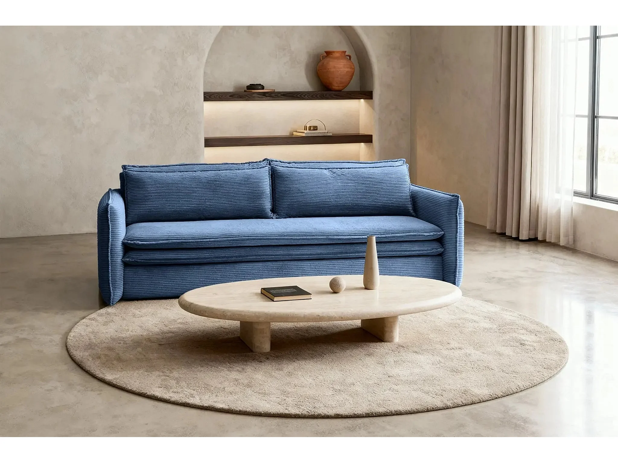 OSCAR - Canapé droit convertible 3 places 3 places - Bleu