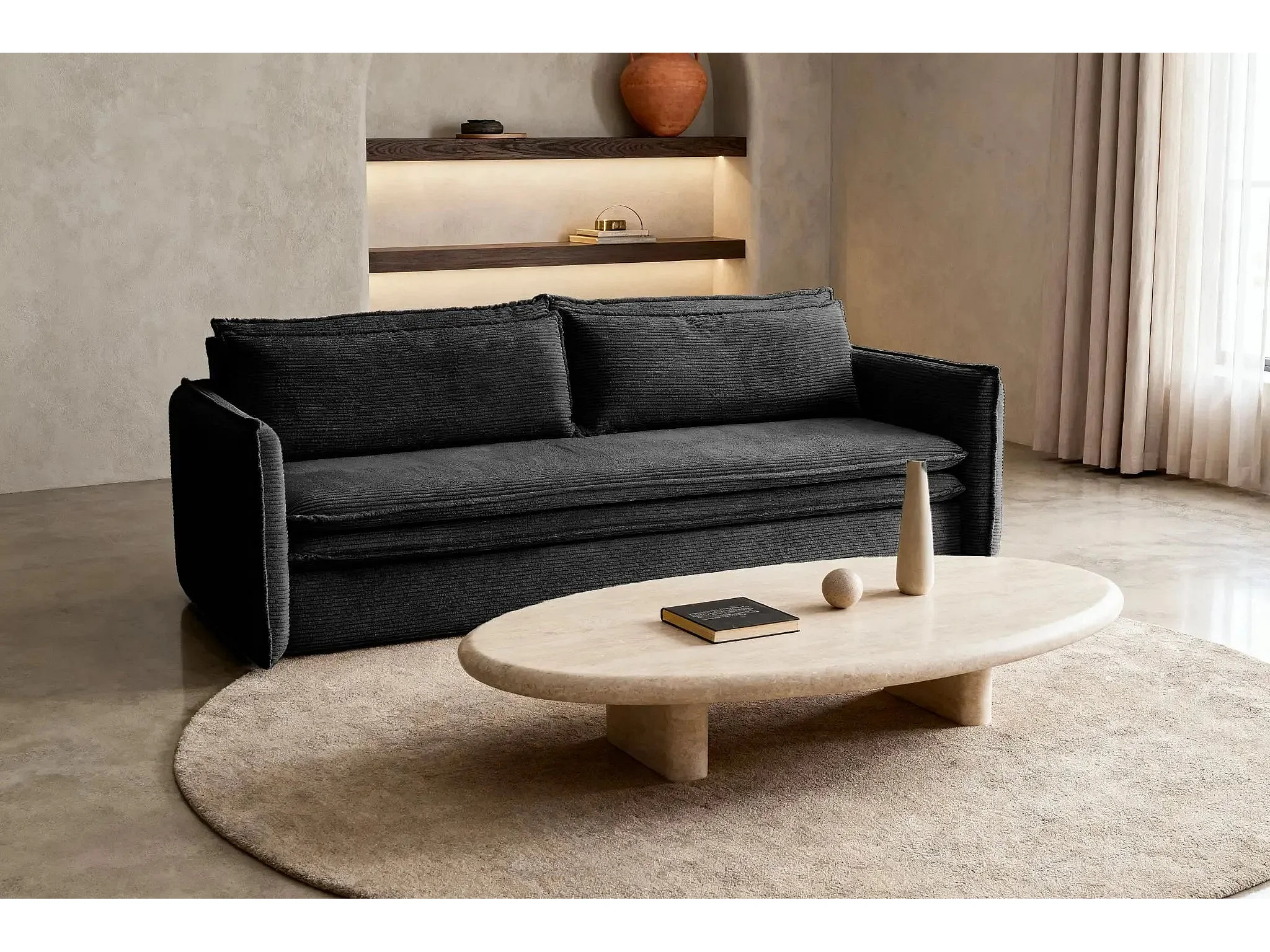 OSCAR - Canapé droit convertible 3 places 3 places - Noir