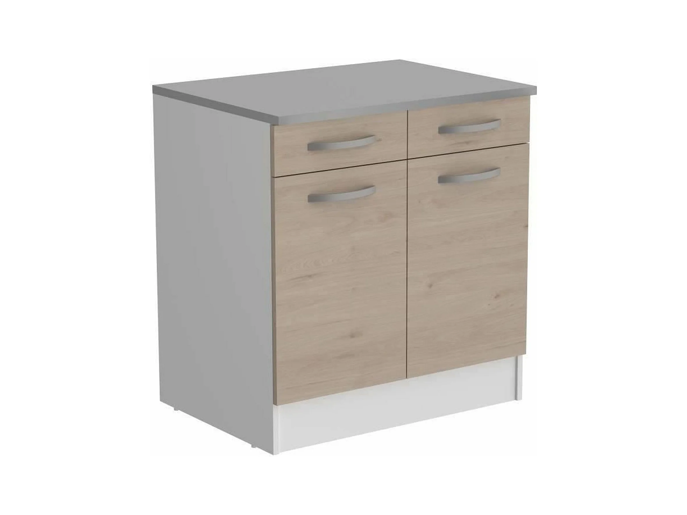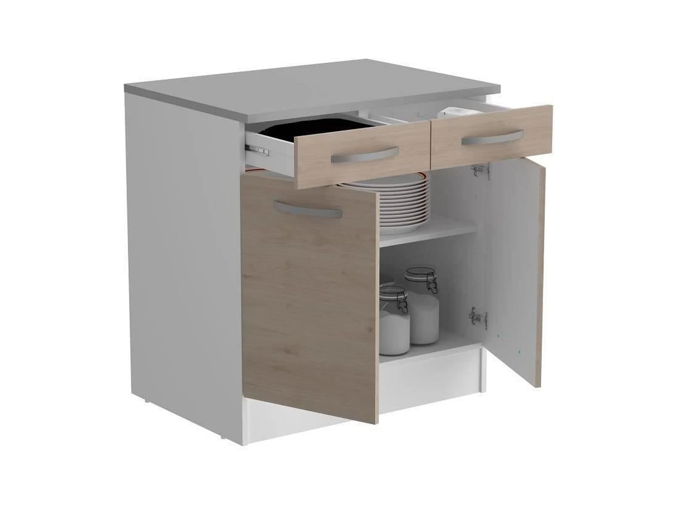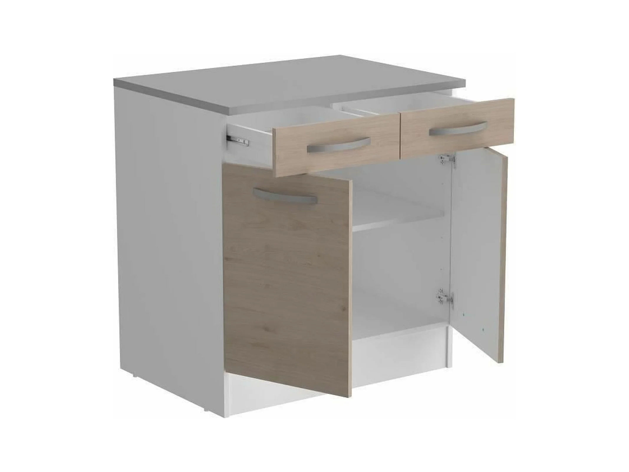 Meuble Bas 2 portes 2 tiroirs + plan - chêne Jackson - 80 x 60 x Hauteur 86 cm