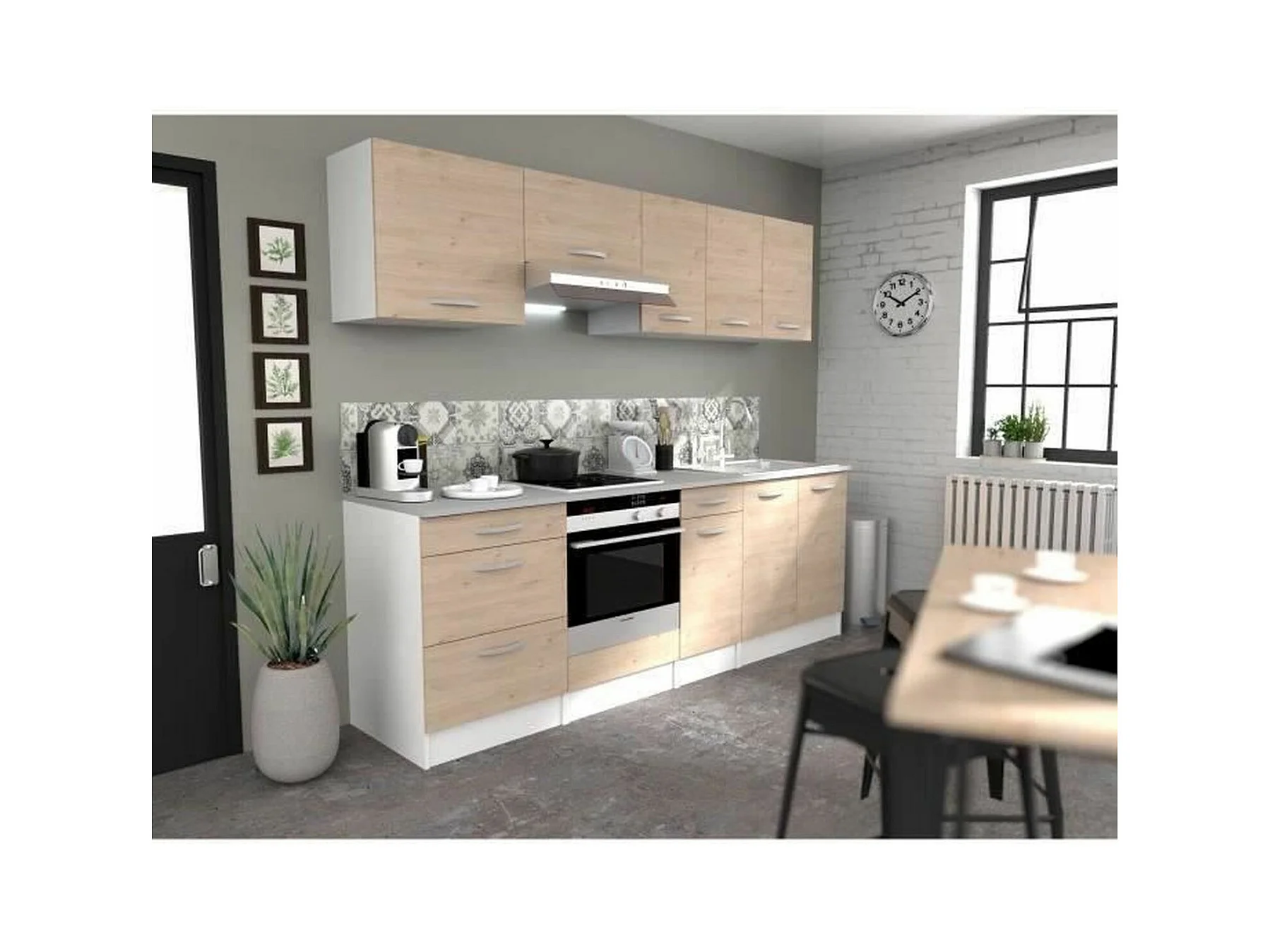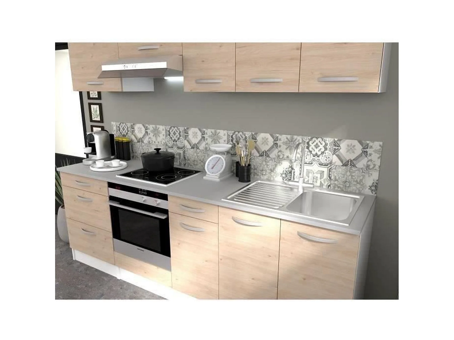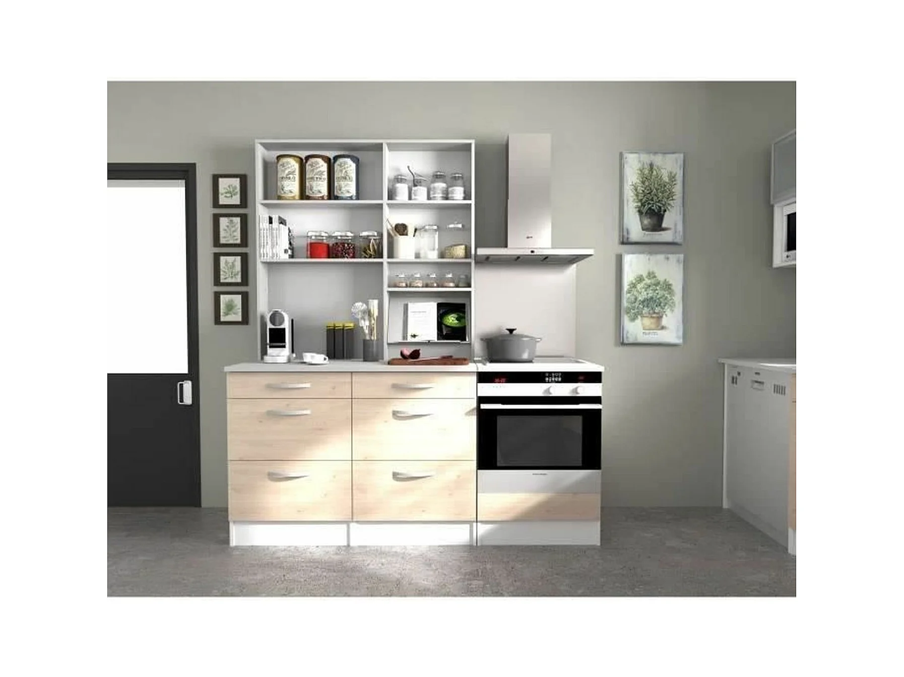 Meuble Bas 2 portes 2 tiroirs + plan - chêne Jackson - 80 x 60 x Hauteur 86 cm